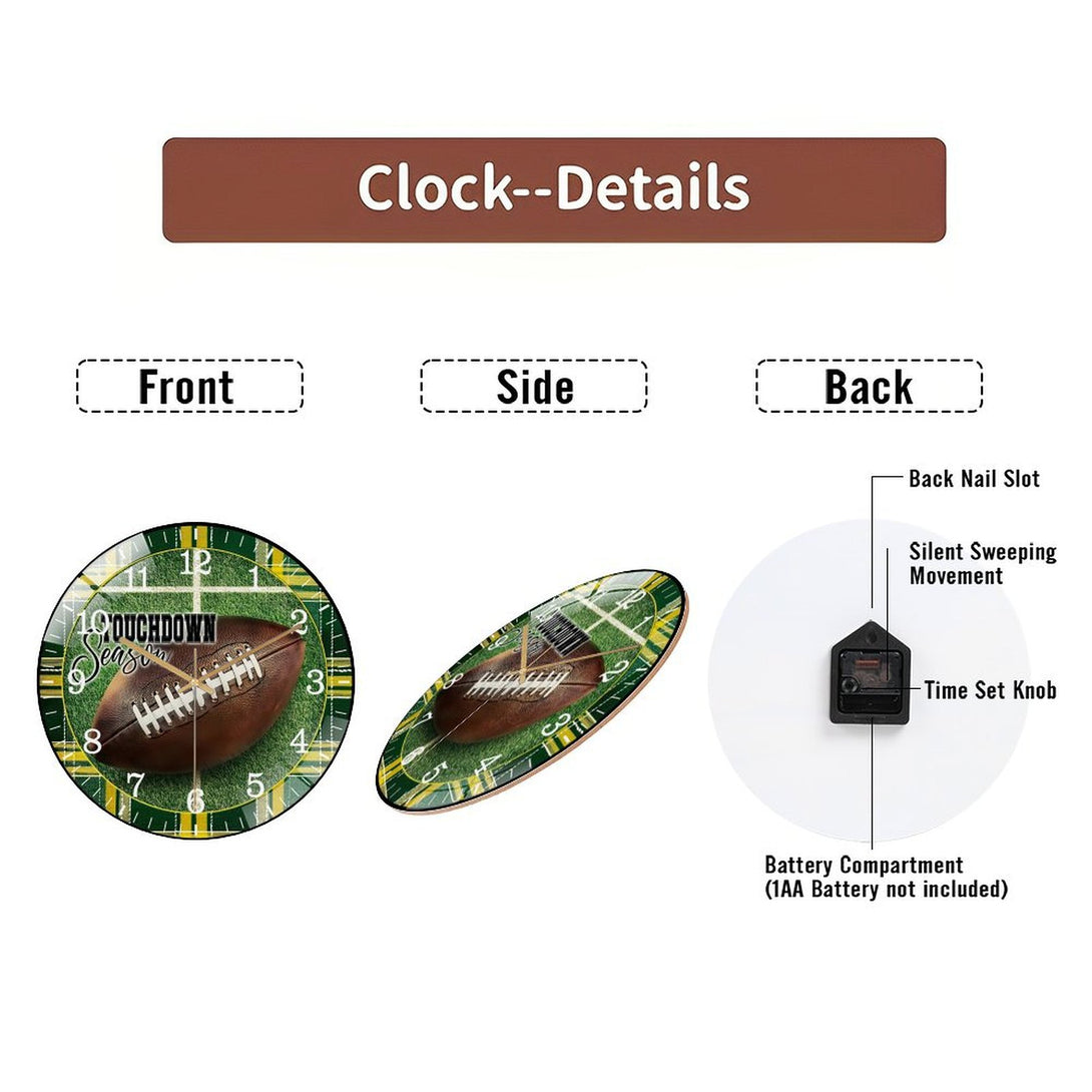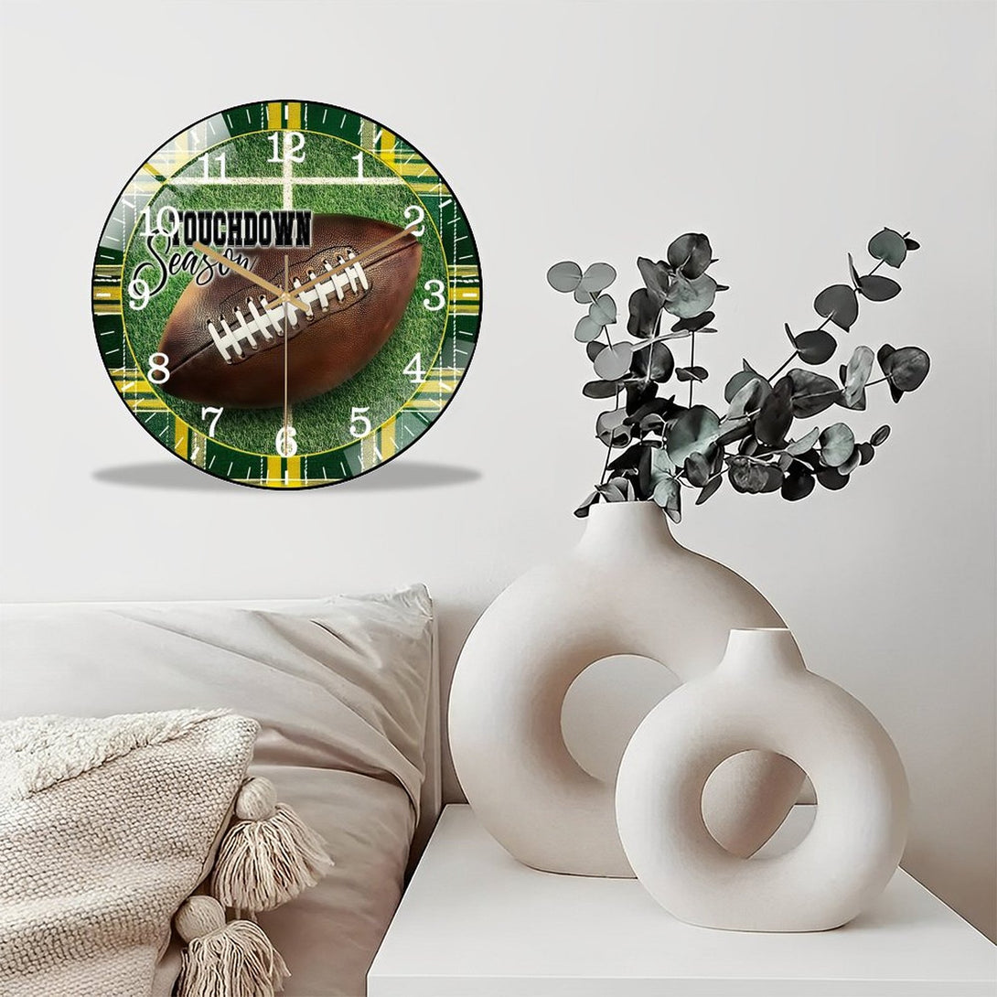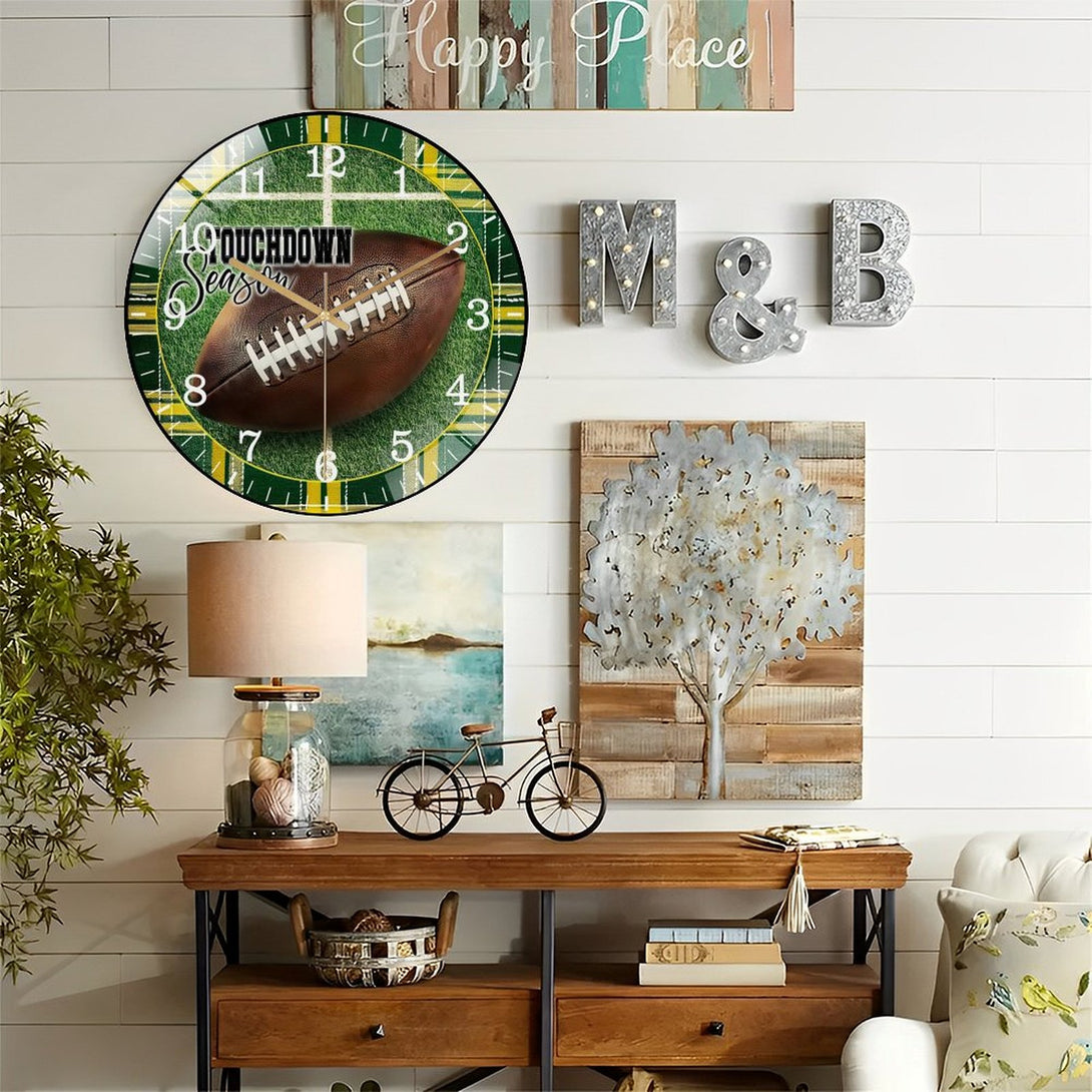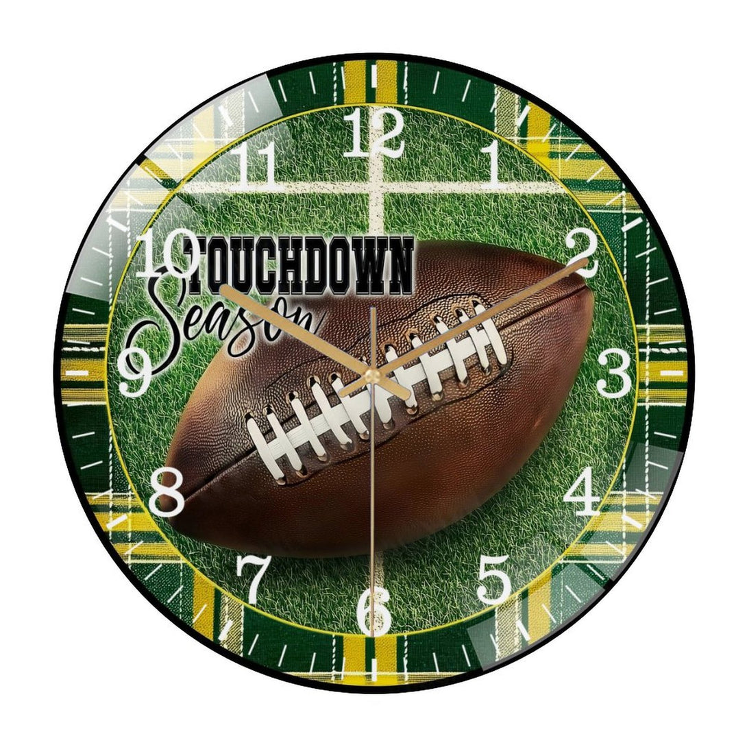 Decor Wall Clocks: Yellow - Green - Football Glass Wall Clock, Fall Football Wall Clock for Homes, Bars, Offices, Man Caves, Garages, And Living Rooms .Also Makes A Great Gift.