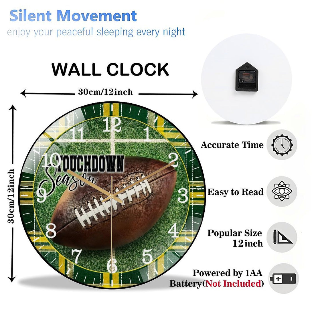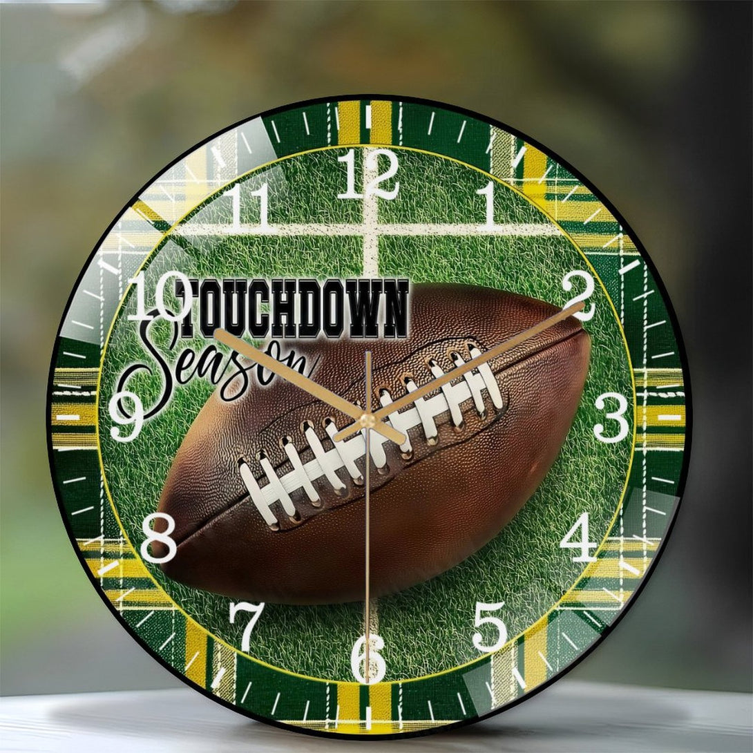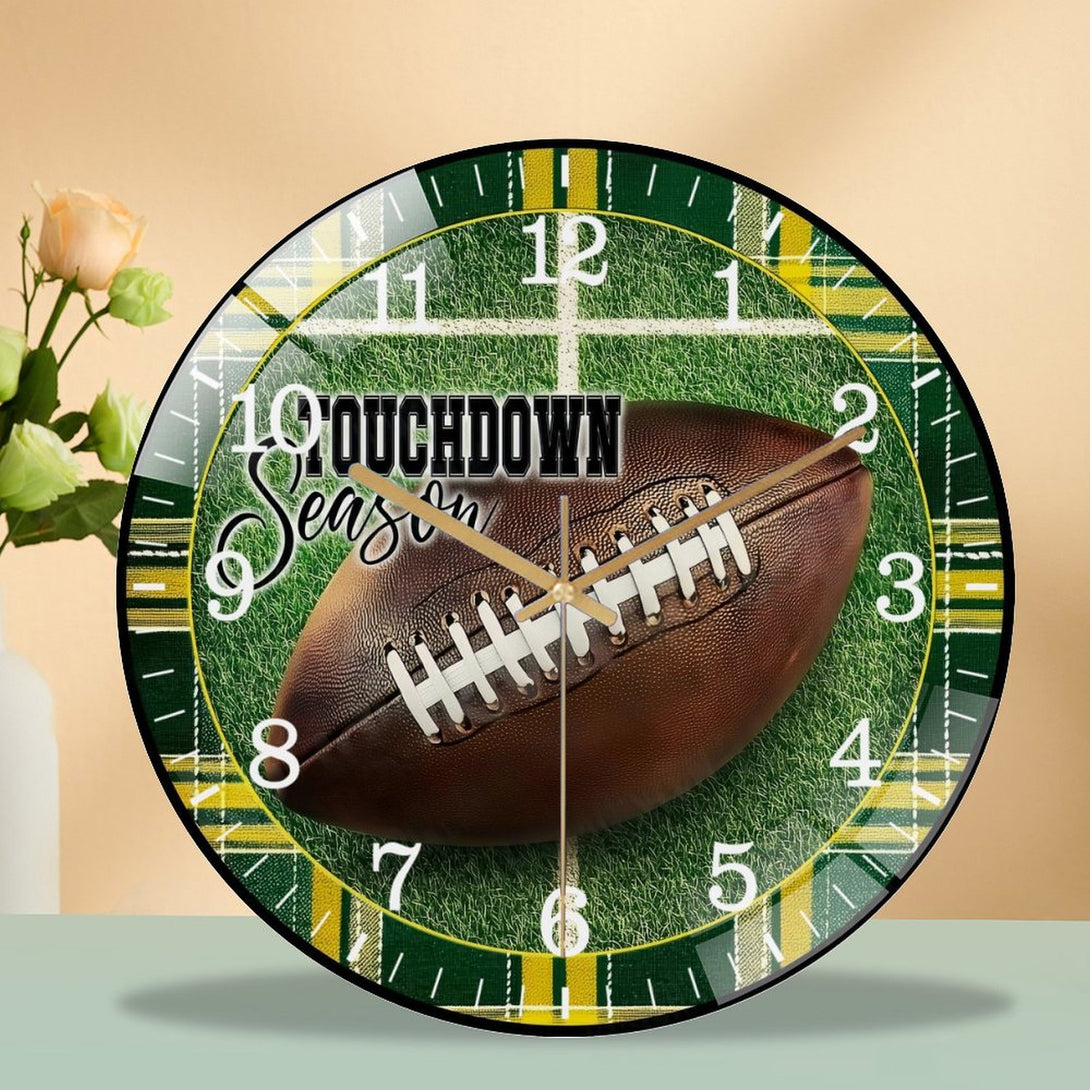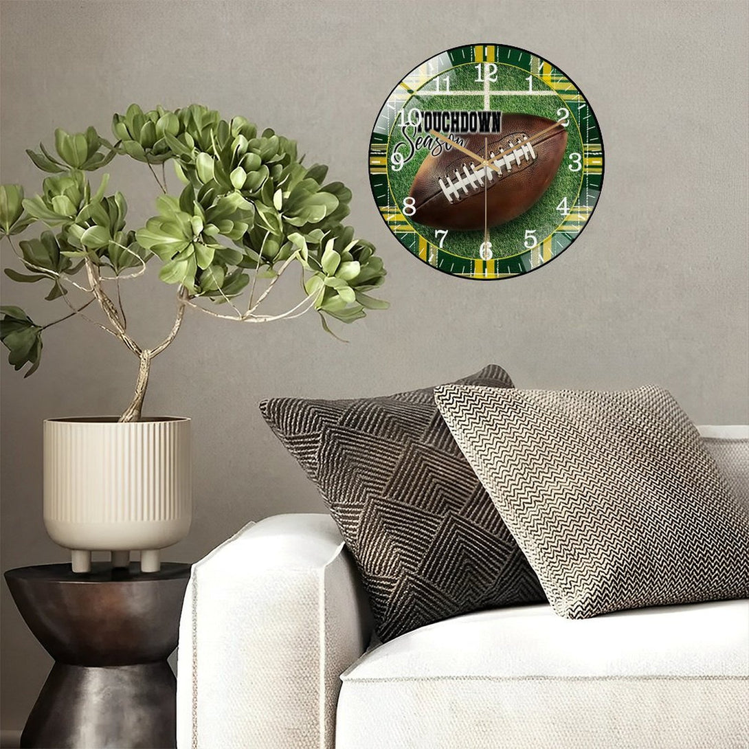 Yellow - Green - Football Glass Wall Clock, Fall Football Wall Clock for Homes, Bars, Offices, Man Caves, Garages, And Living Rooms .Also Makes A Great Gift.,12×12inch(30×30cm)