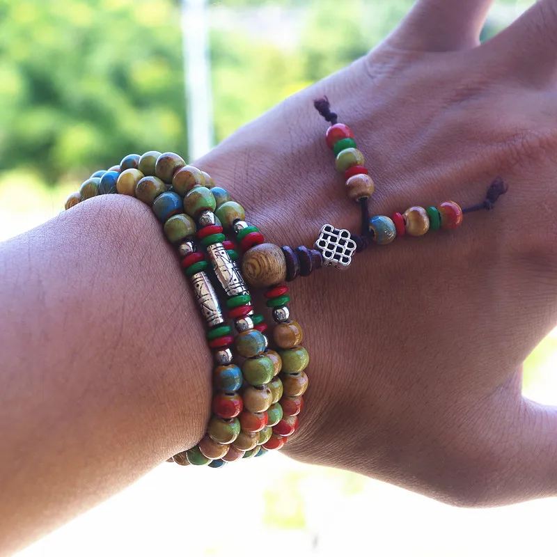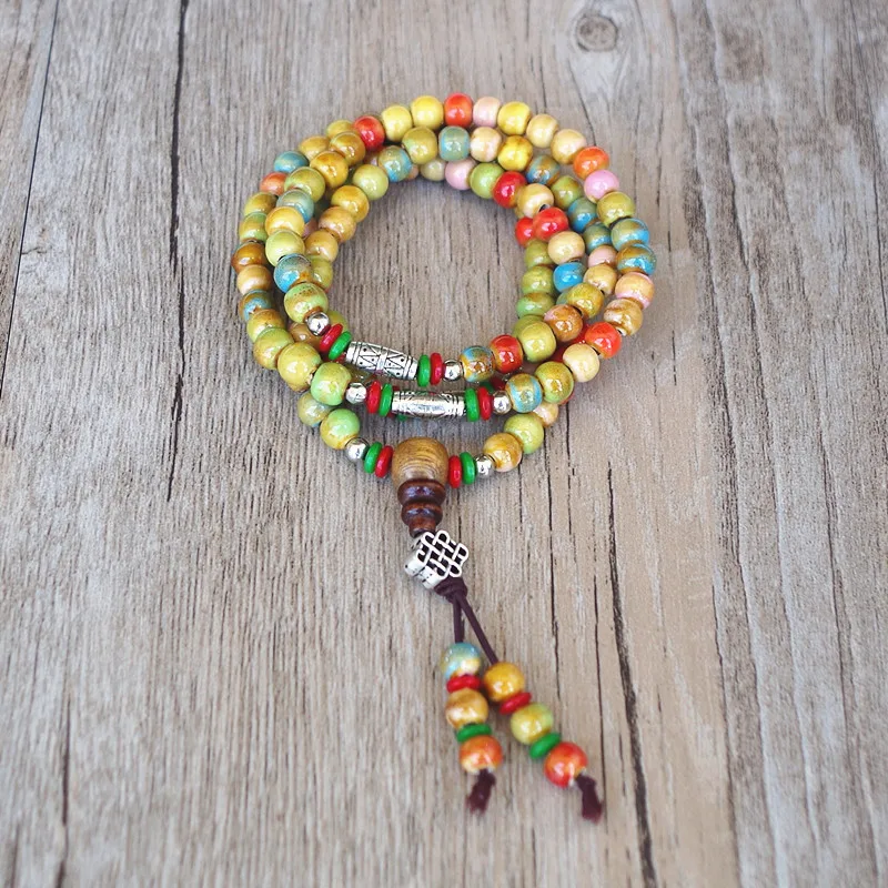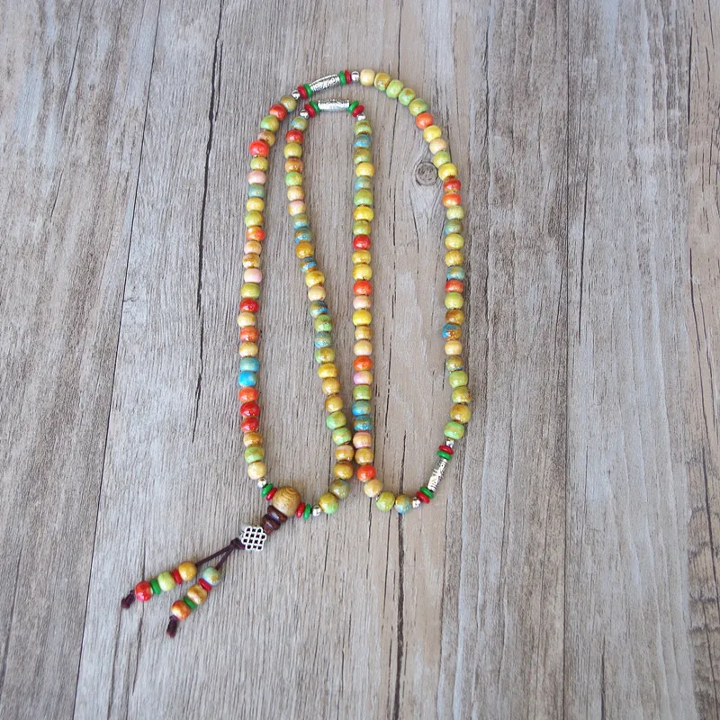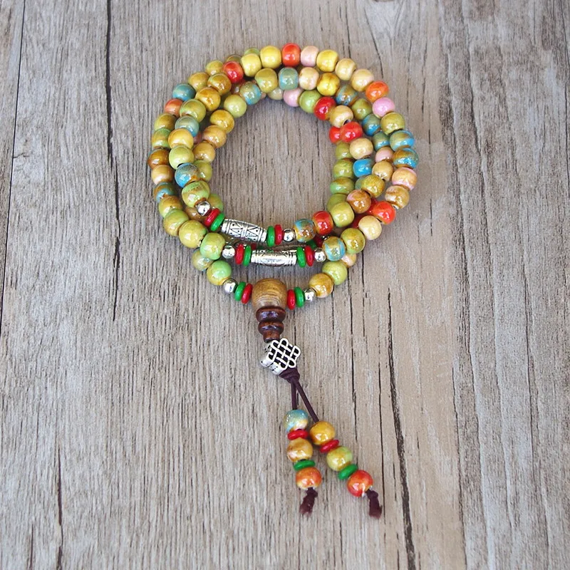 Pulsera o collar con dije de Mala, de 6 mm, 108 cuentas de cerámica, para chakras, budismo tibetano.