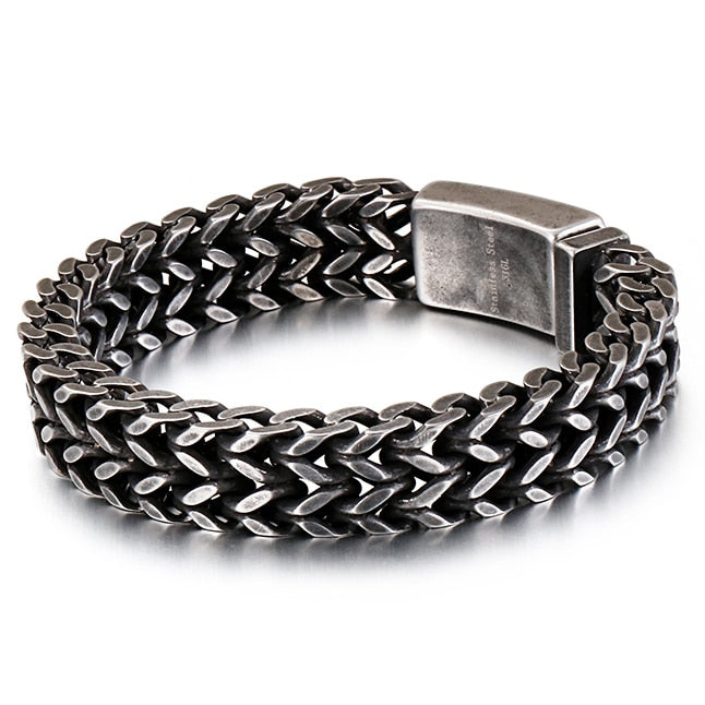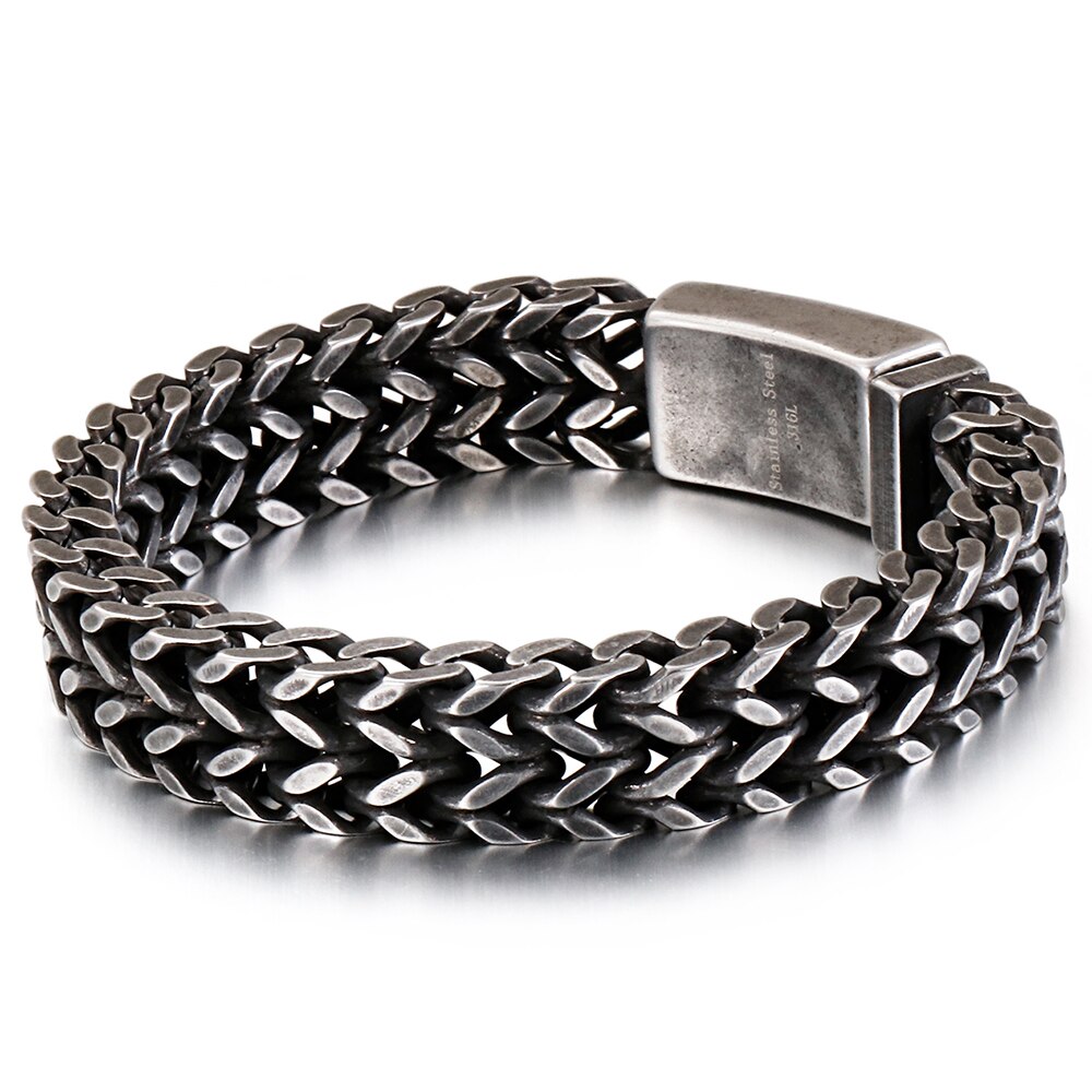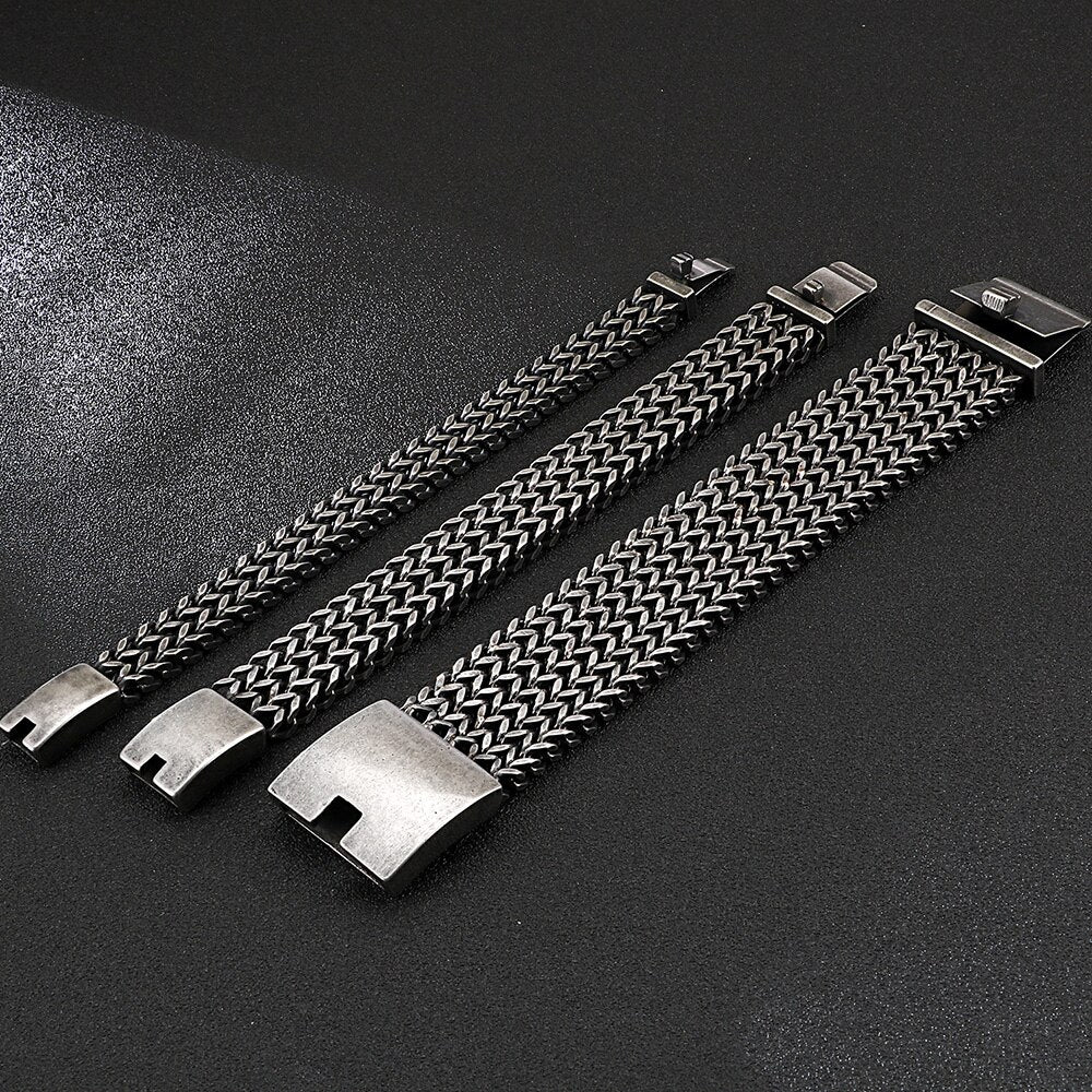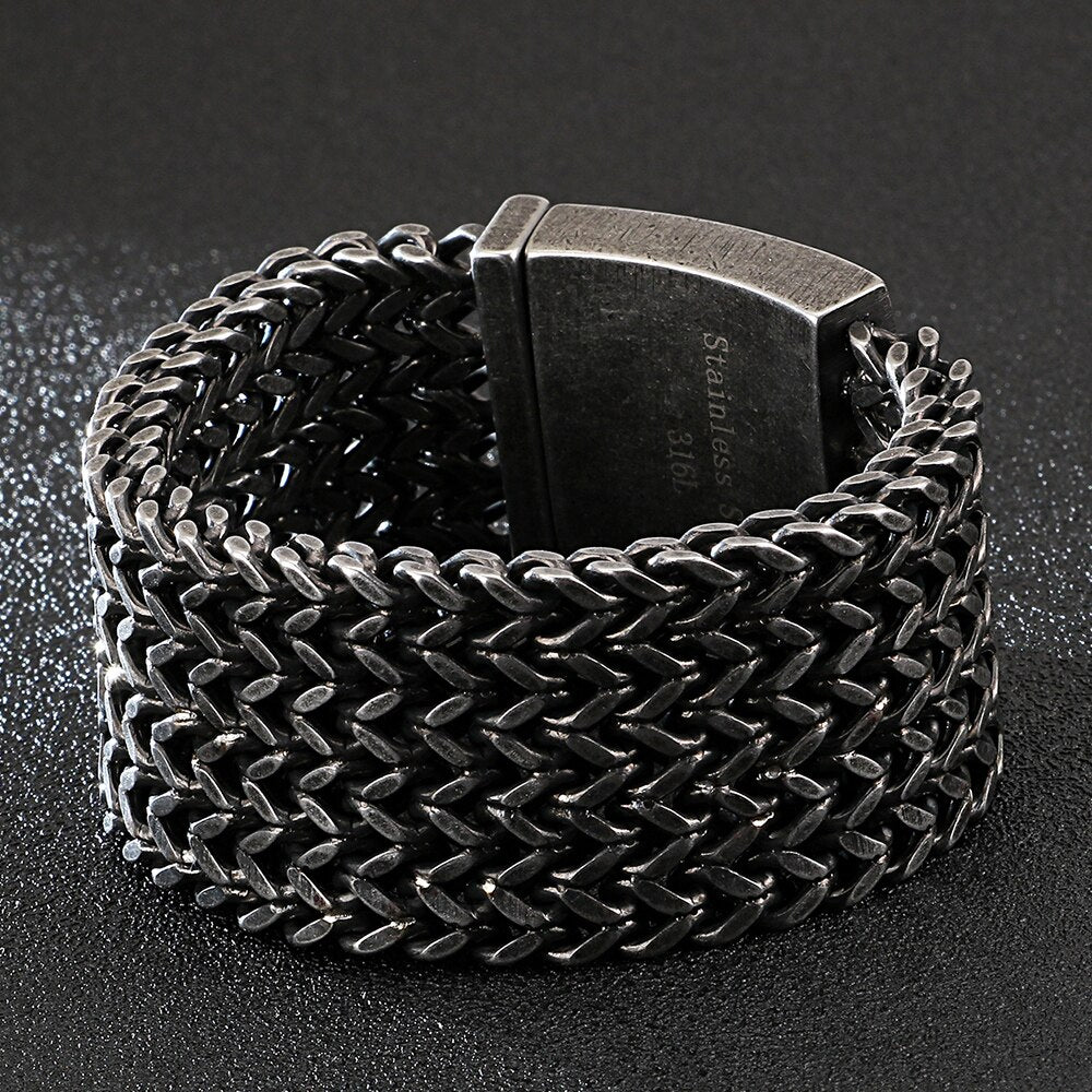 Pulsera de cadena cubana de 12/30 mm de ancho para hombre, estilo vintage, de acero inoxidable negro, joyería de motociclista.