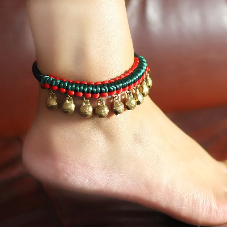 Tobilleras - 14 diseños de joyería étnica, tobilleras étnicas vintage trenzadas hechas a mano, nuevas cadenas de pie con dijes de cobre de carne de Tailandia