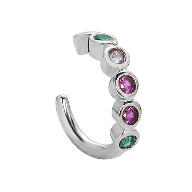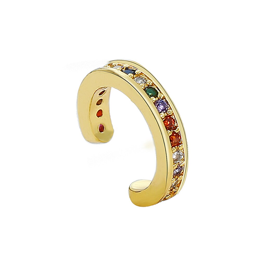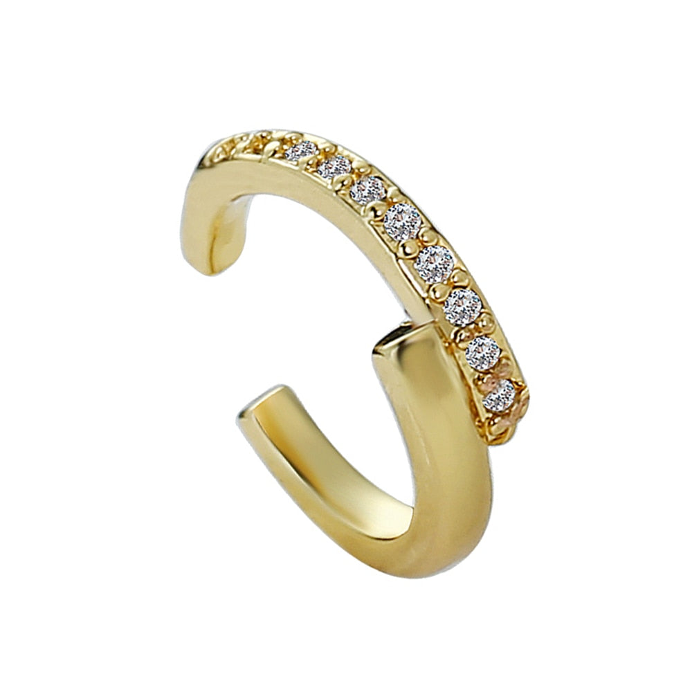 Pendientes de moda - 1 pieza de aretes de clip estilo punk dorado para mujer, sin perforar, con forma de C, geométricos, con circonita cúbica y diamantes de imitación, para cartílago.