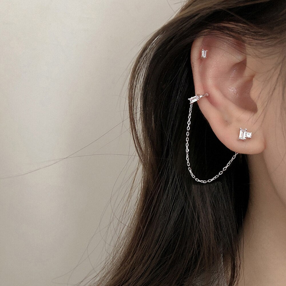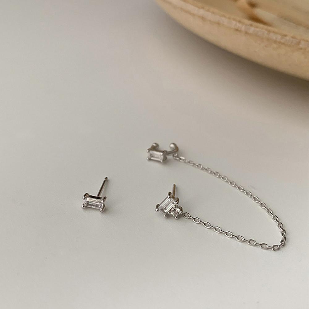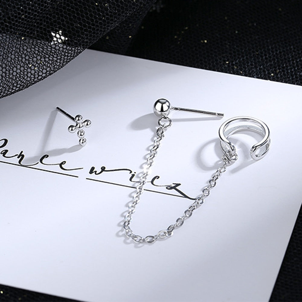 1 juego de pendientes asimétricos con borlas y cadena con clip para las orejas, para mujer, Corea C