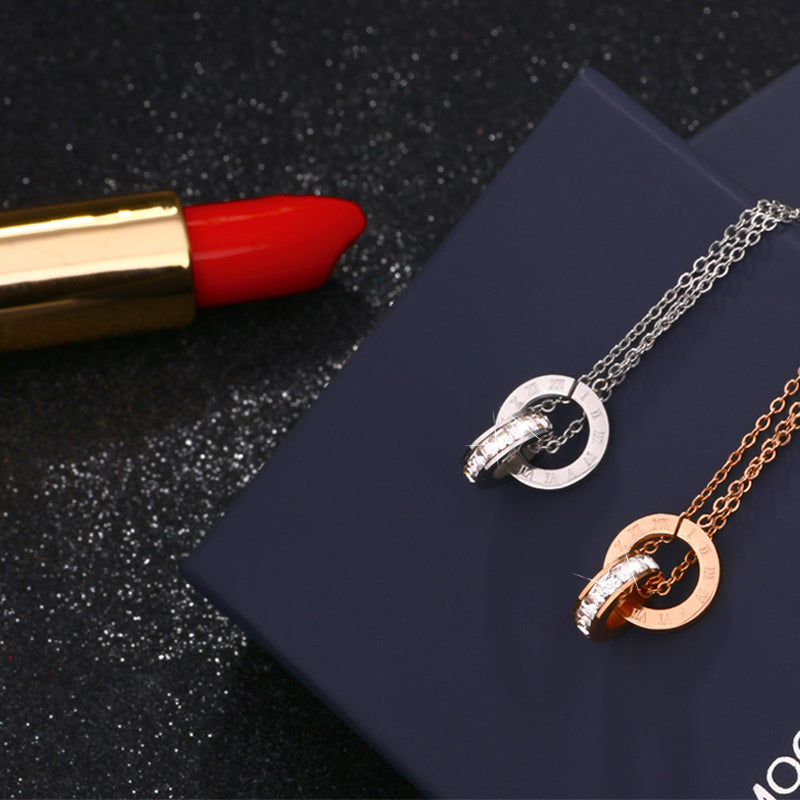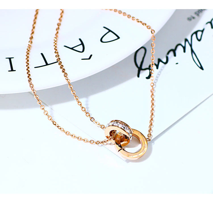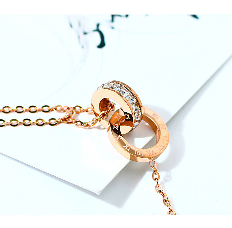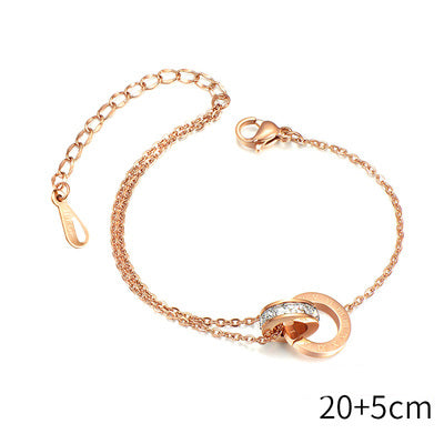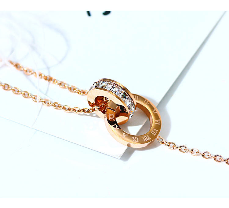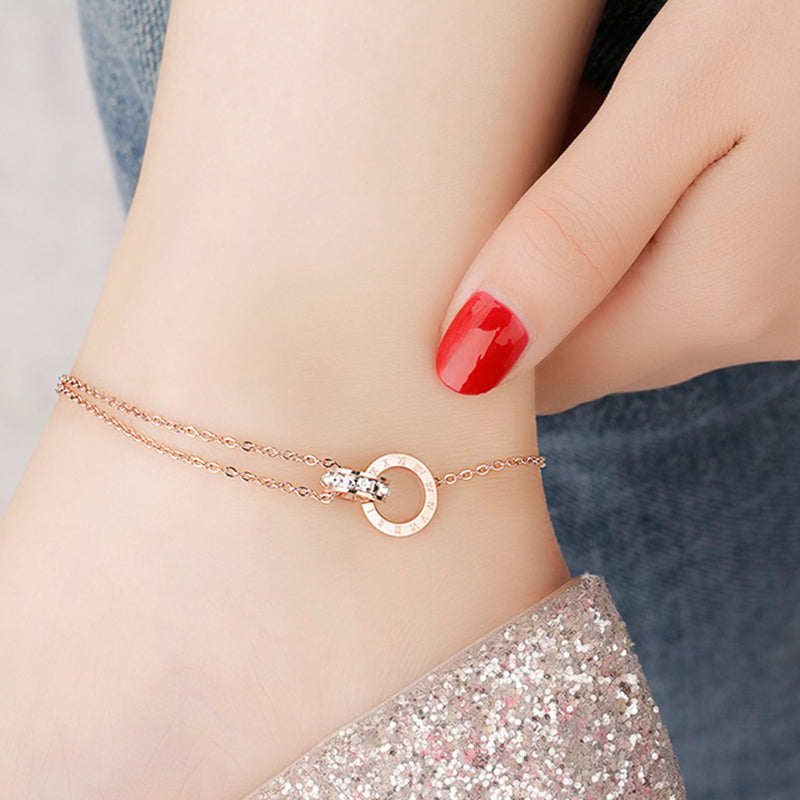 Tobilleras de 2 círculos para mujer, con números romanos, circonitas, oro rosa de 18 quilates, cadena de acero inoxidable 316L, joyería que no se decolora, el mejor regalo (GA119)