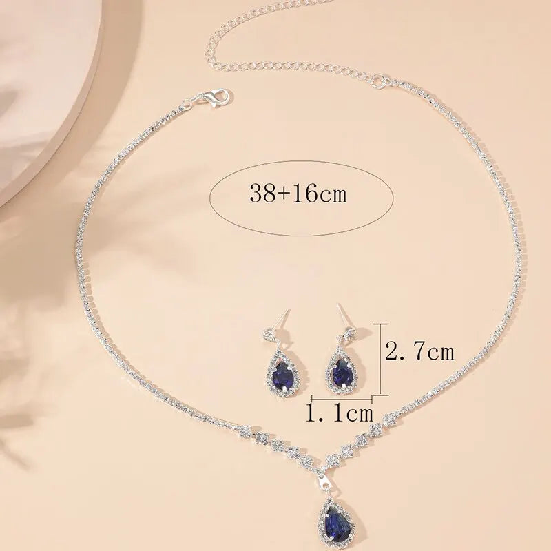 Juego de 2 pulseras y collares con piedras de cristal azul y circonitas cúbicas deslumbrantes, joyería romántica para uso diario, regalo para niña.