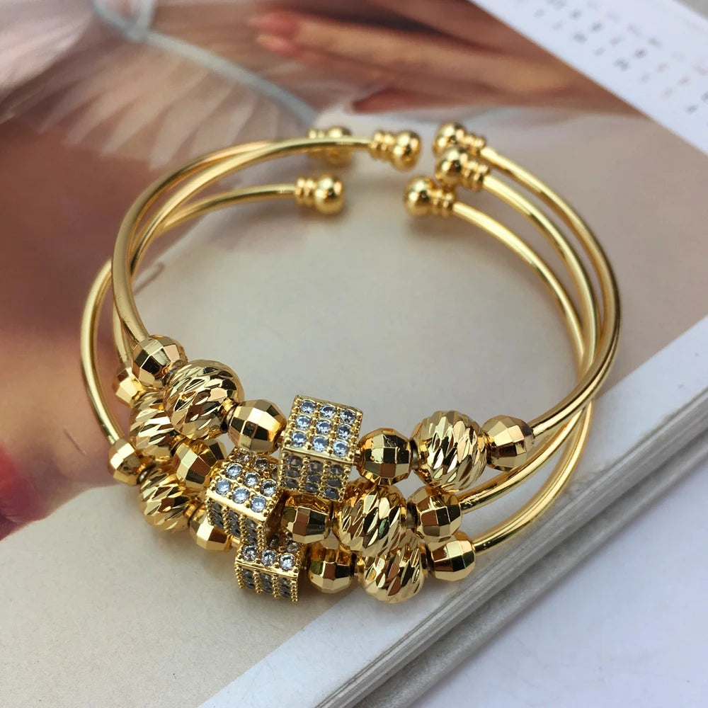 Brazaletes de tres tonos para mujer, 3 piezas, pulsera de moda, regalo de cumpleaños y fiesta, FHK17337, 2024