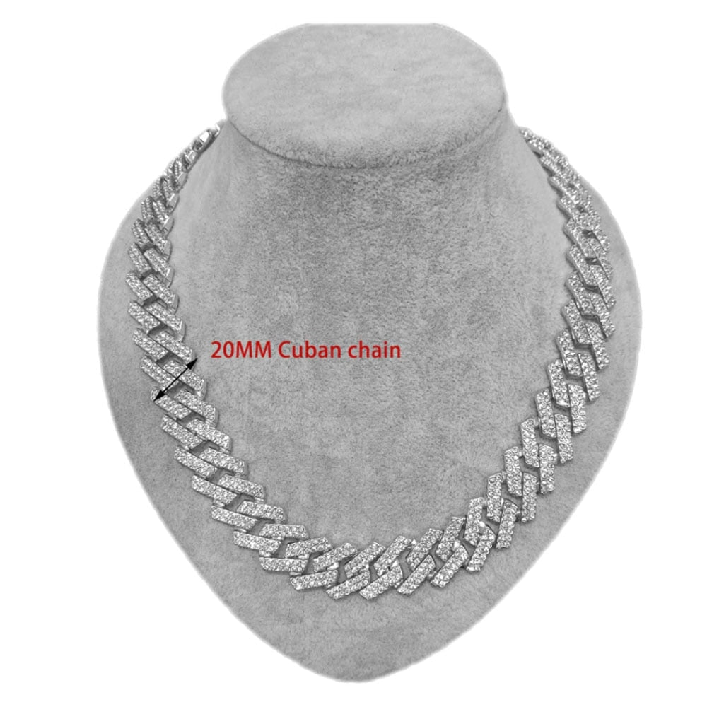 Collares colgantes de cadena de hip hop de 20 mm para hombre, con engaste pavé de diamantes de imitación, estilo hip hop, con rombos brillantes, joyería cubana.