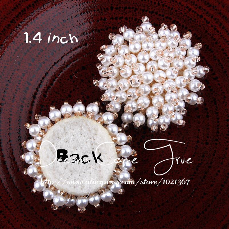 Lote de 20 botones planos de perlas redondas de 1,4" para recién nacidos, para manualidades, botones decorativos hechos a mano para broches de novia.