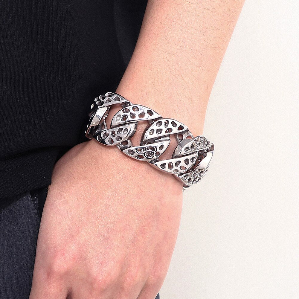 Pulsera de cadena cubana de acero inoxidable 316L de 24/30 mm de ancho para hombre, joyería pesada de color plata, pulseras para hombre grabables