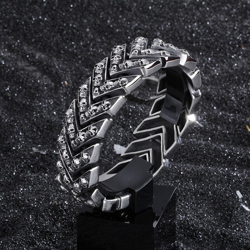 Pulsera de cadena de calavera de 25 mm de ancho para hombre, estilo punk rock, con esqueleto.