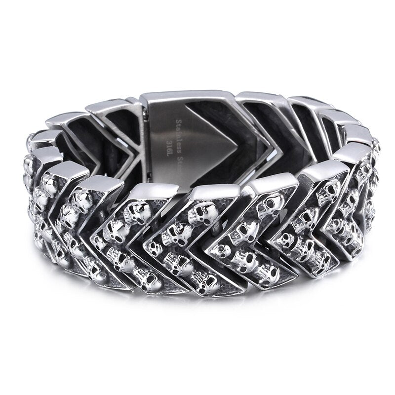 Pulsera de cadena de calavera de 25 mm de ancho para hombre, estilo punk rock, con esqueleto, de acero inoxidable.