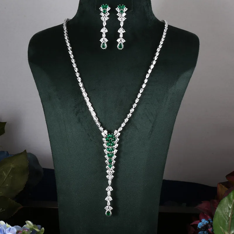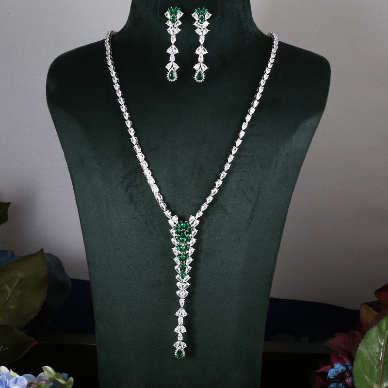 Conjunto completo de 2 piezas de joyería nupcial de circonitas para mujer