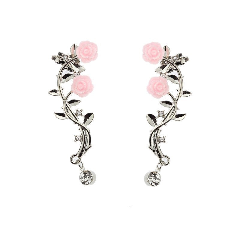 2 piezas elegantes con forma de flor y diamantes de imitación para la oreja izquierda
