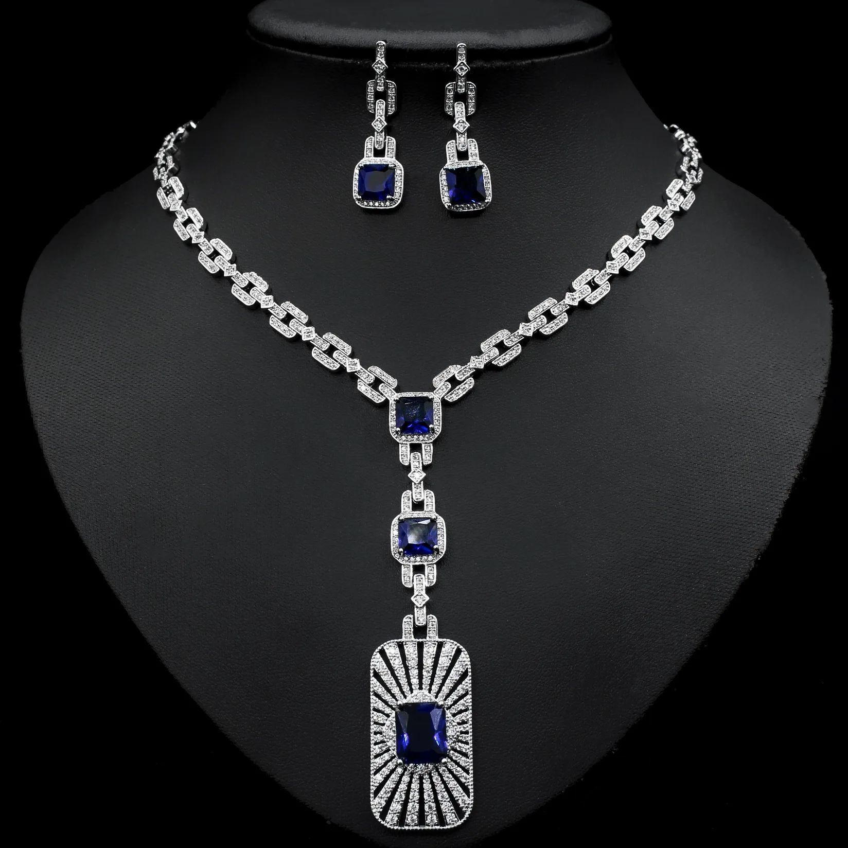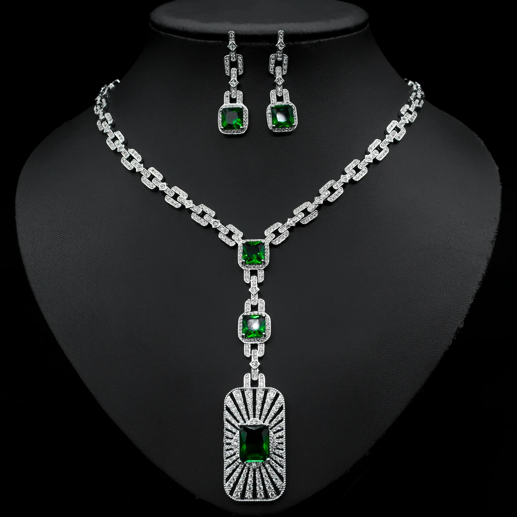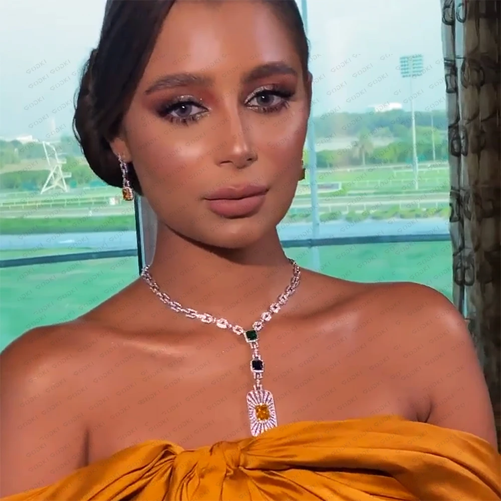 Conjunto de 2 piezas de collar y pendientes multicolores para mujer, joyería nupcial de Dubái con circonitas, ideal como regalo para bodas y fiestas.