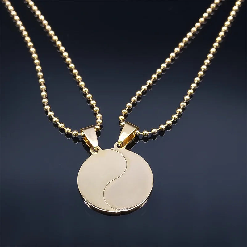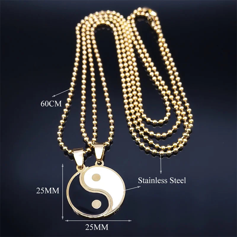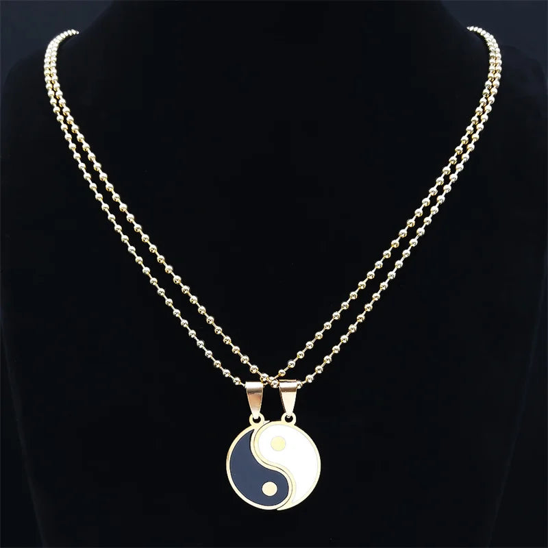 2 collares de acero inoxidable con diseño de Yin Yang, Tai Chi y chismes, colgantes de amistad para mejores amigas, joyería para mujer