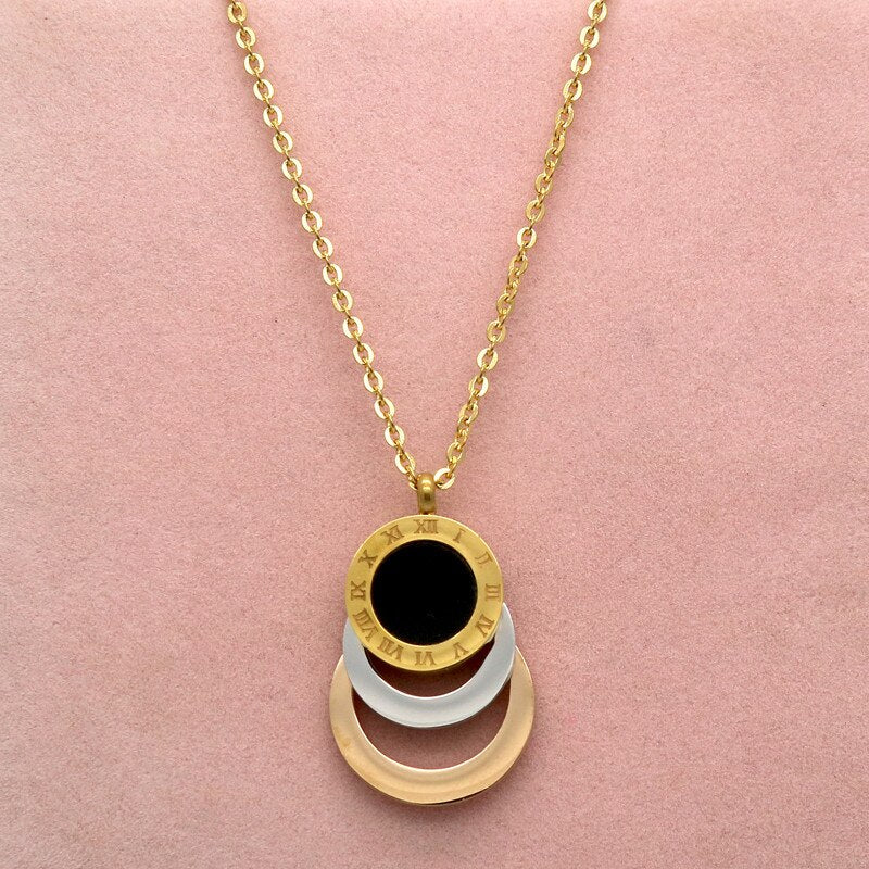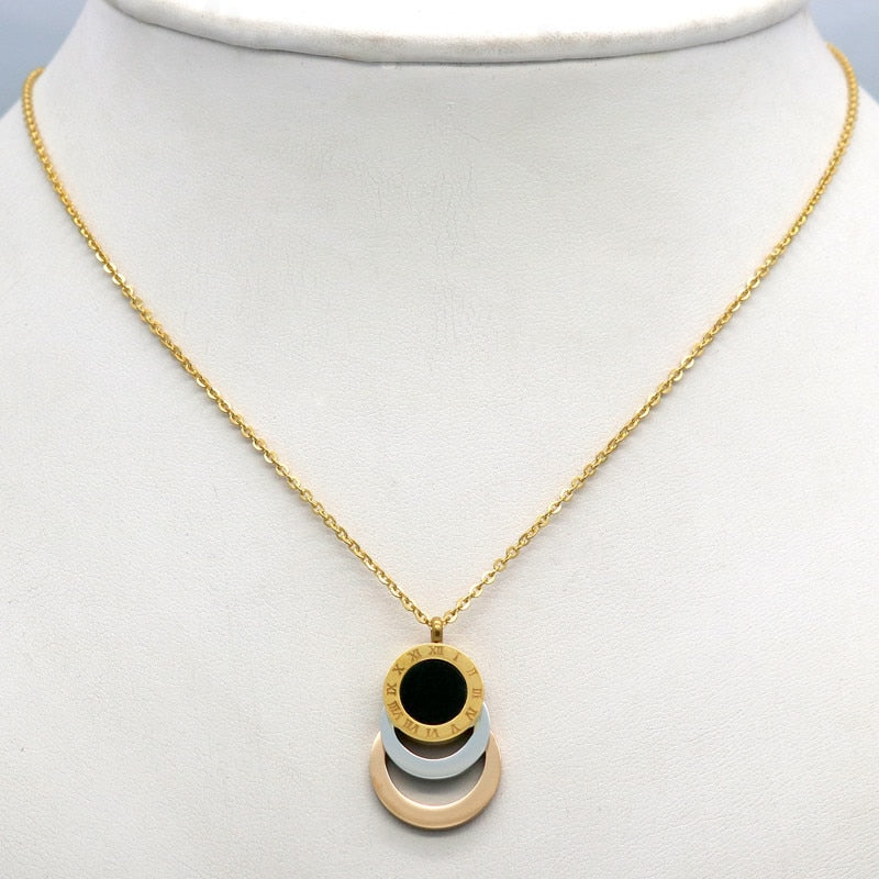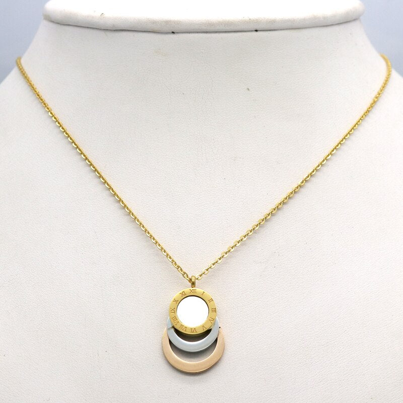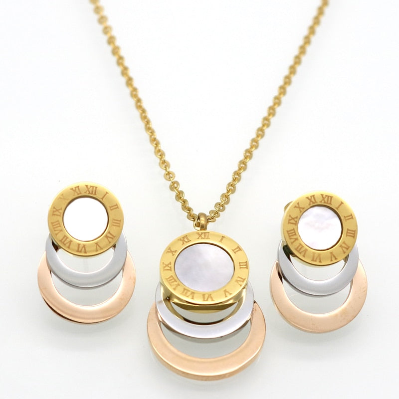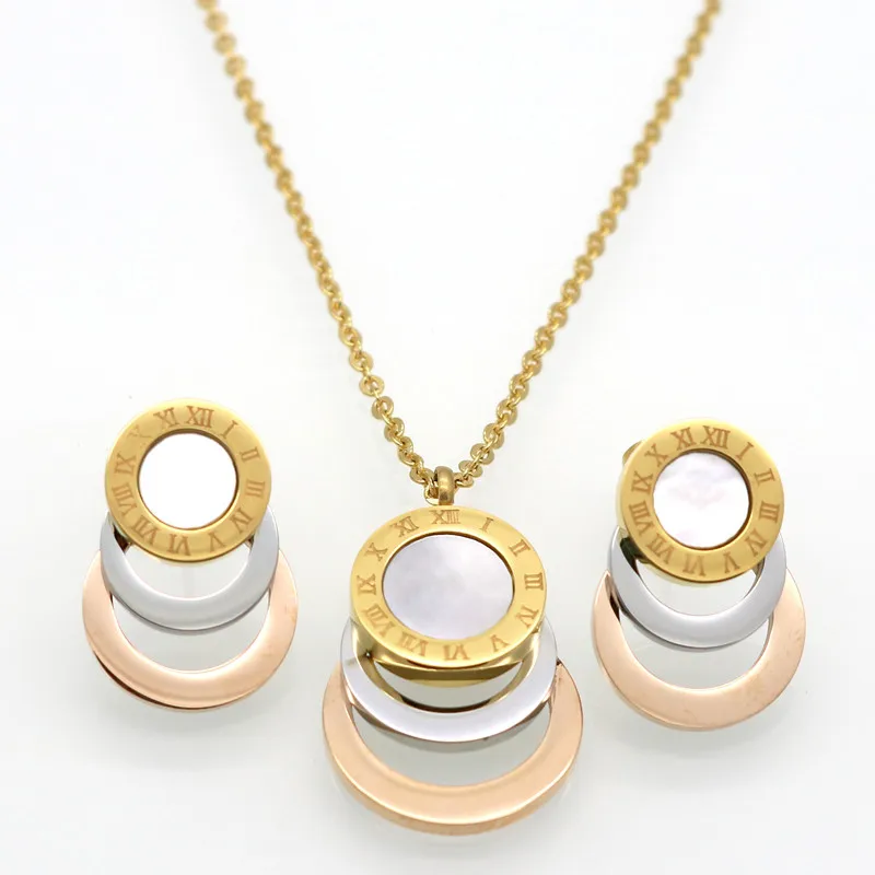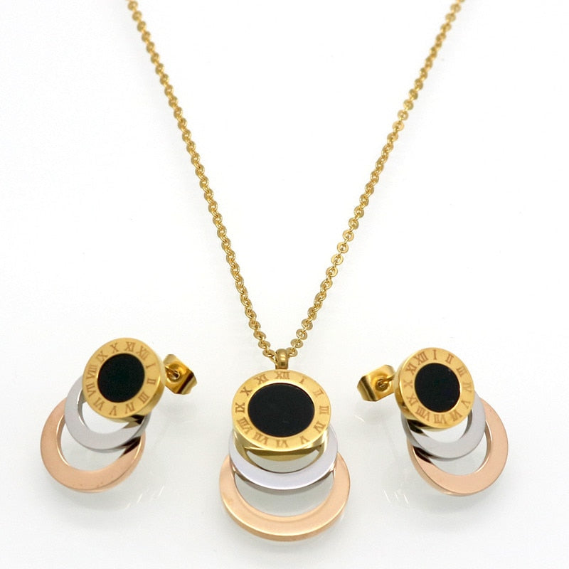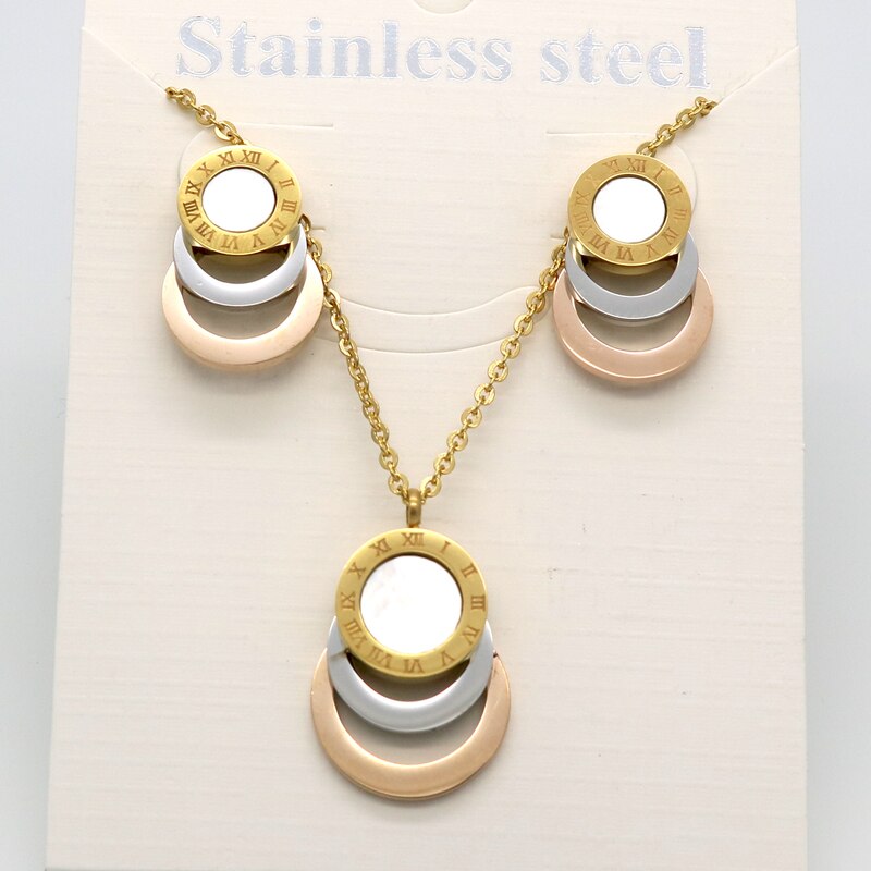 Conjunto de joyería de acero inoxidable de 3 colores, aretes y collar para mujer.