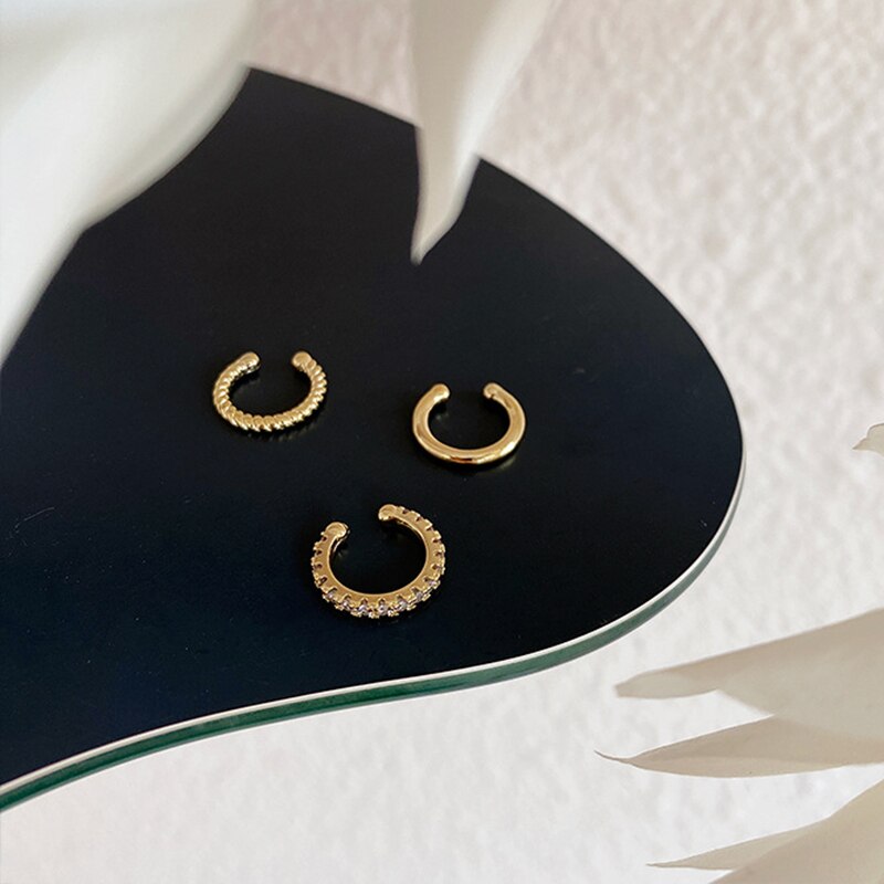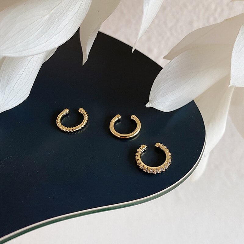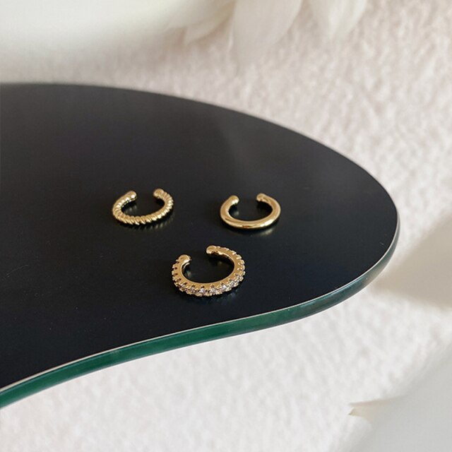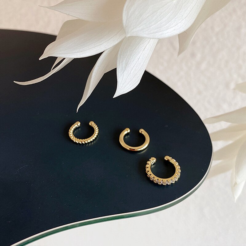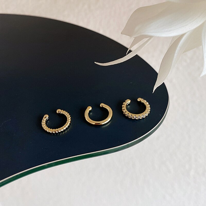 Característica: Juego de 3 pendientes con clip de circonita cúbica micropavé sin perforar, pendientes retorcidos, pendientes minimalistas sencillos.