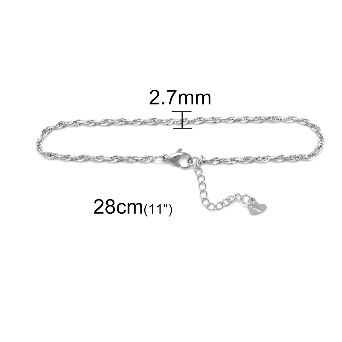 Tobilleras de acero inoxidable 304 para mujer, color plateado, para playa, estilo vintage, 1 unidad.