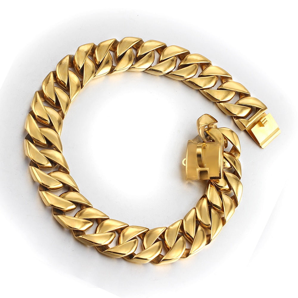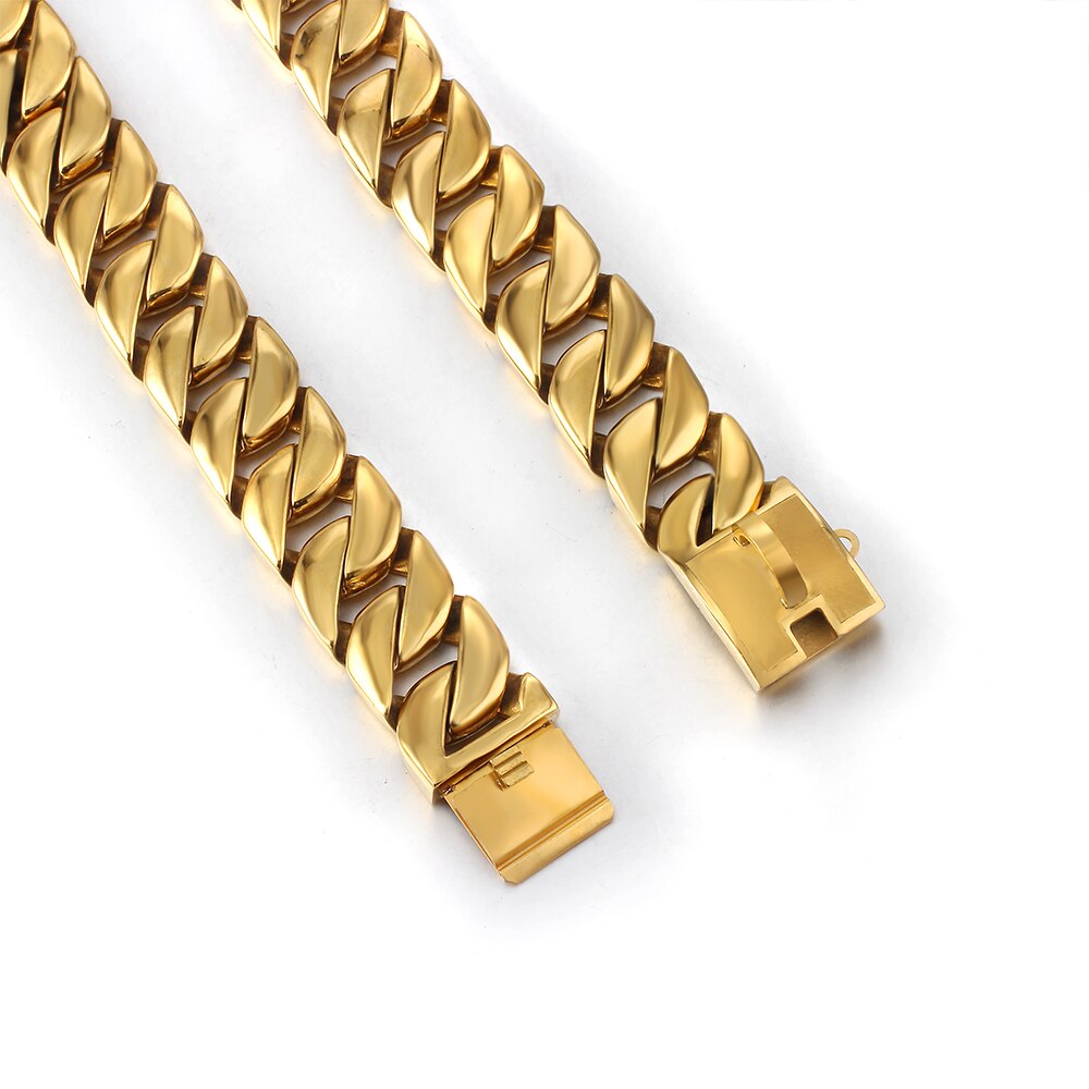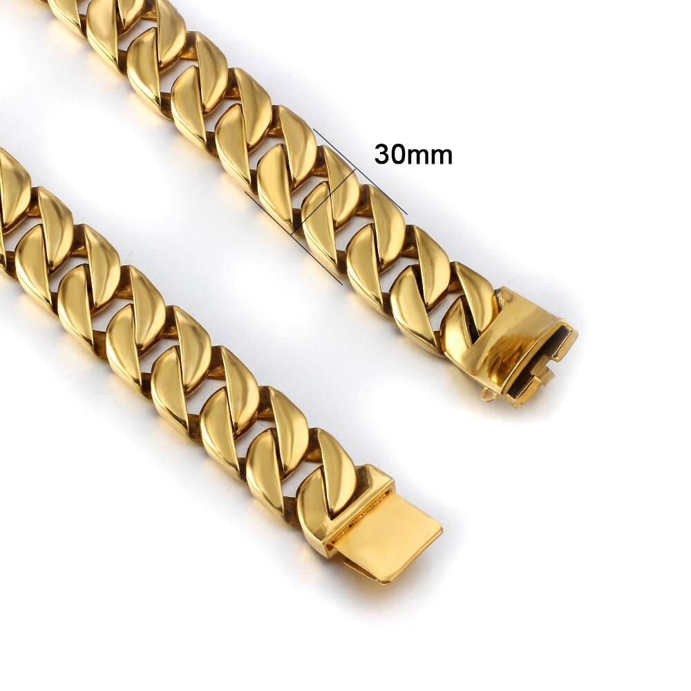 Collar para perro de acero inoxidable de 30 mm con cadena de metal y doble hilera de cromo para entrenamiento y exhibición.