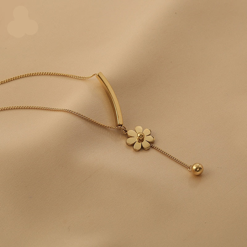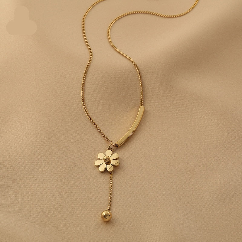 Joyería de oro 585 - 316 acero inoxidable. Exquisito collar para mujer. Collar de margaritas con borlas y temperamento de viento frío. Cadena de clavícula. Joyería para mujer.