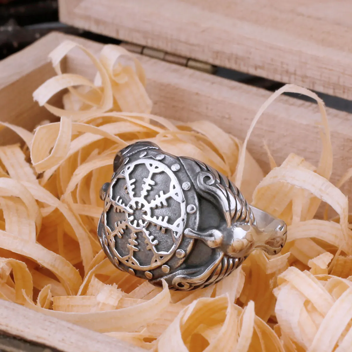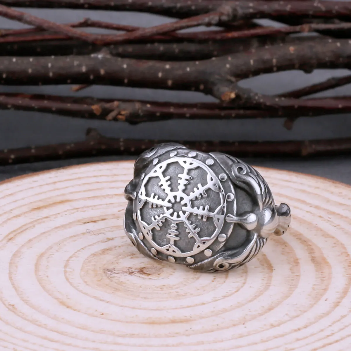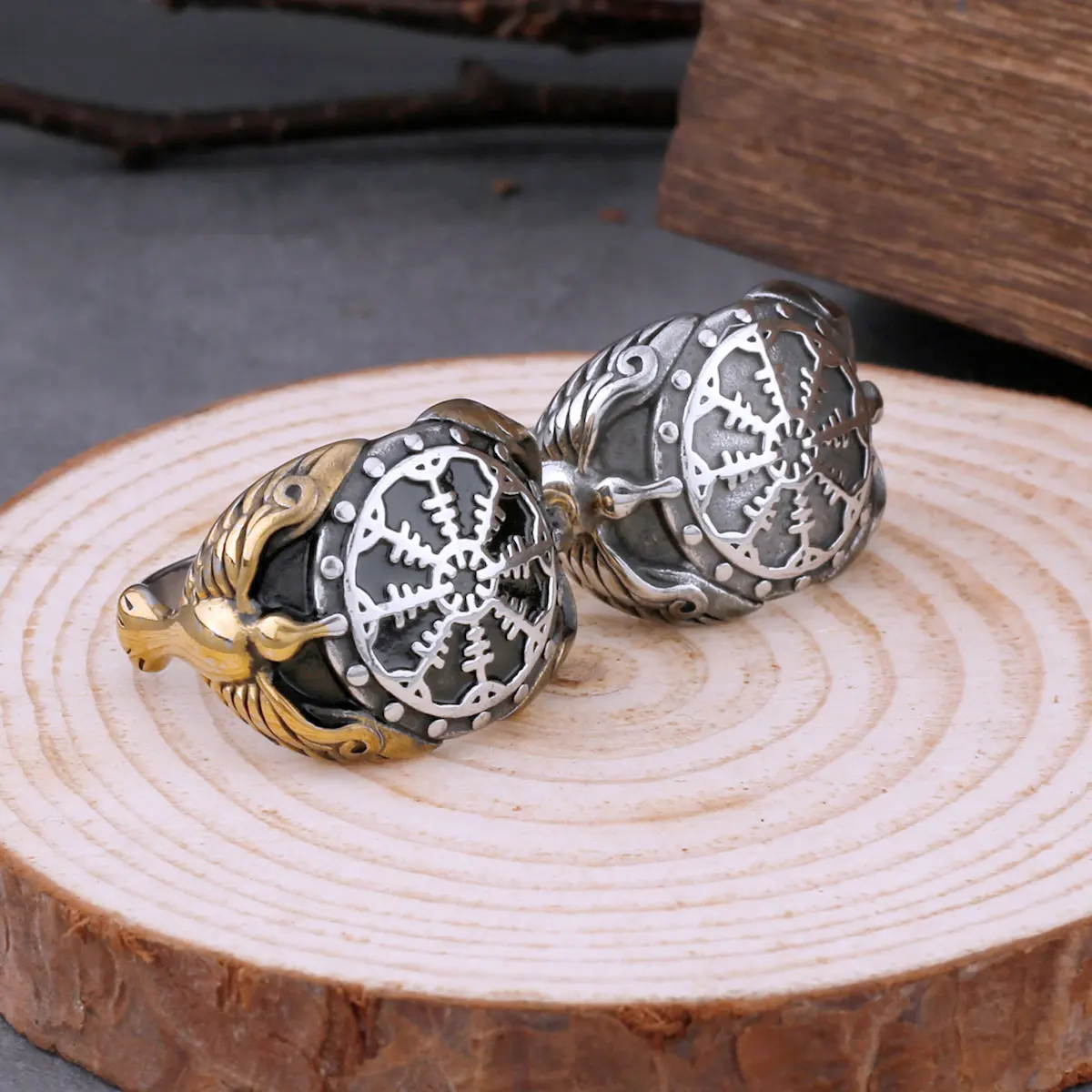 Anillo de brújula nórdica 316L, mitología vikinga, brújula de Odín, amuleto, runa, anillo tótem retro