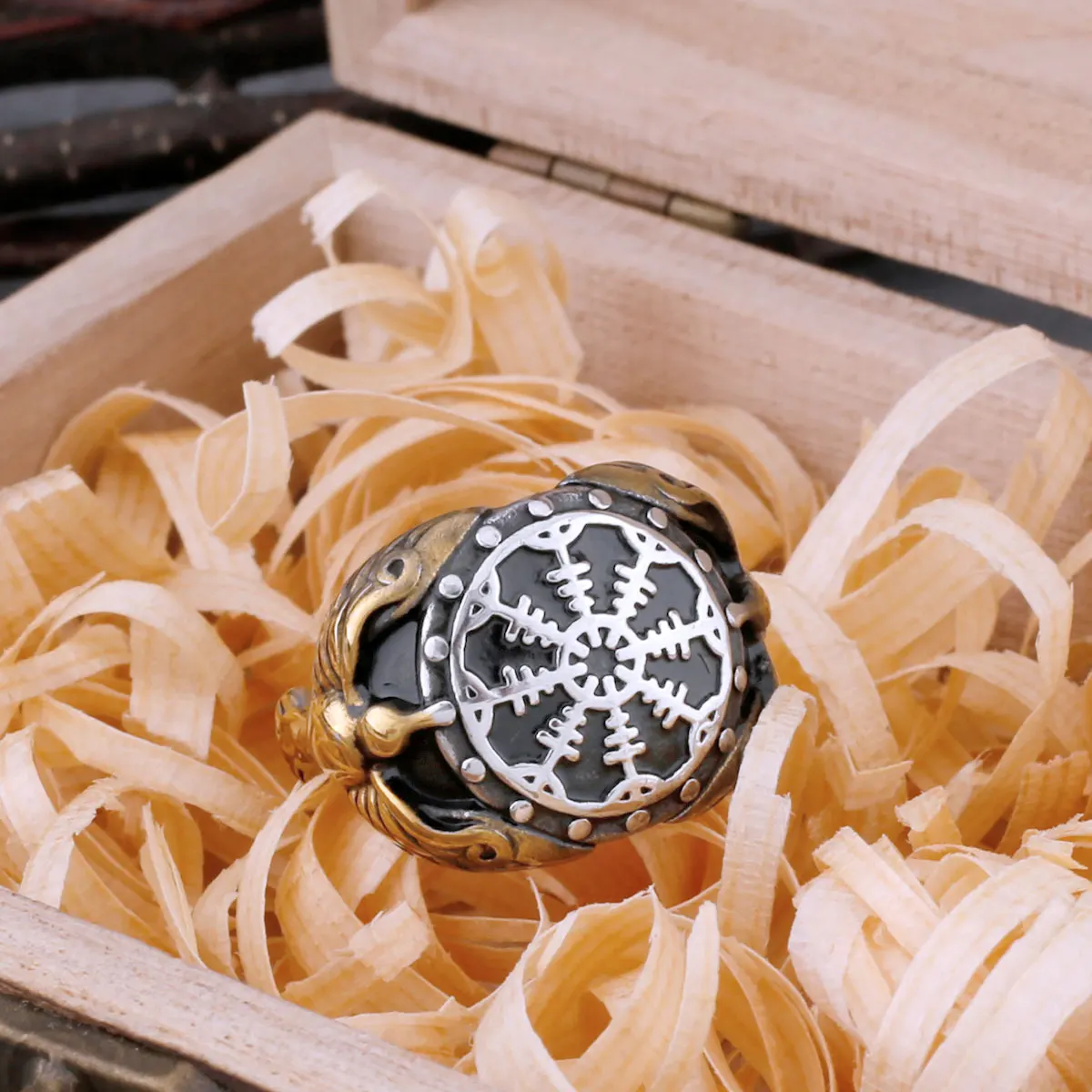 Joyería vikinga - Anillo de brújula nórdica 316L, mitología vikinga, brújula de Odín, amuleto, runa, tótem retro, estilo punk hip hop, caja de regalo de fiesta de alta gama