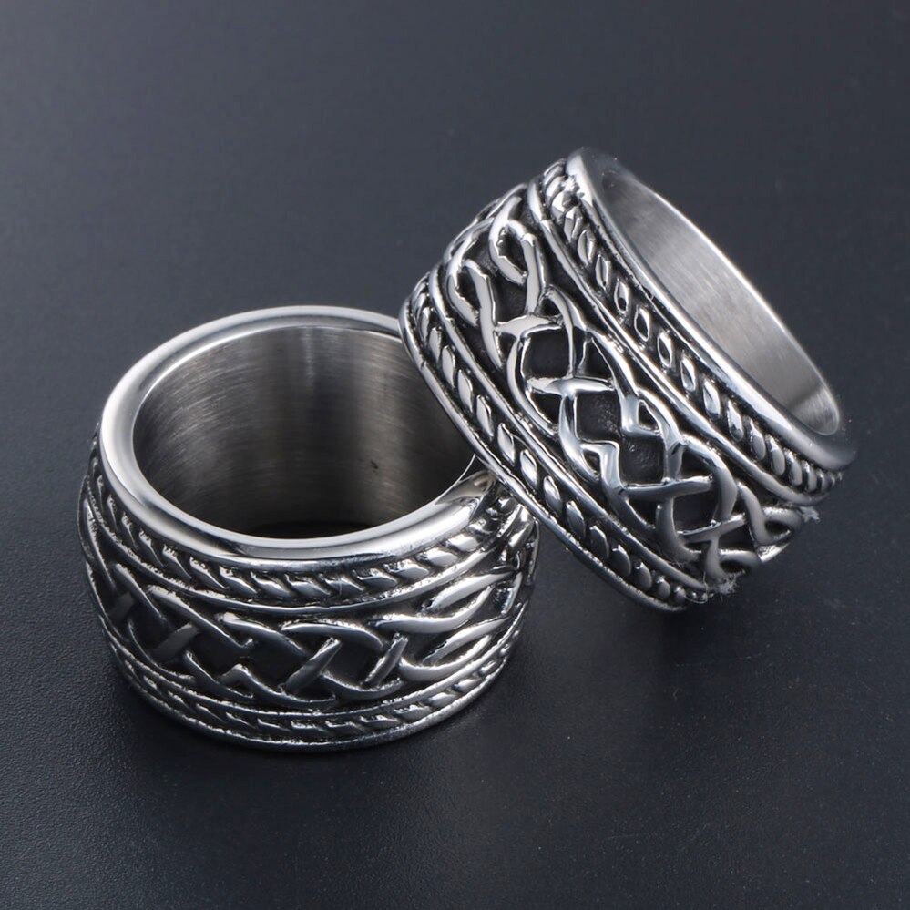 Anillos grandes de acero inoxidable 316L para hombre, estilo punk rockero vintage.