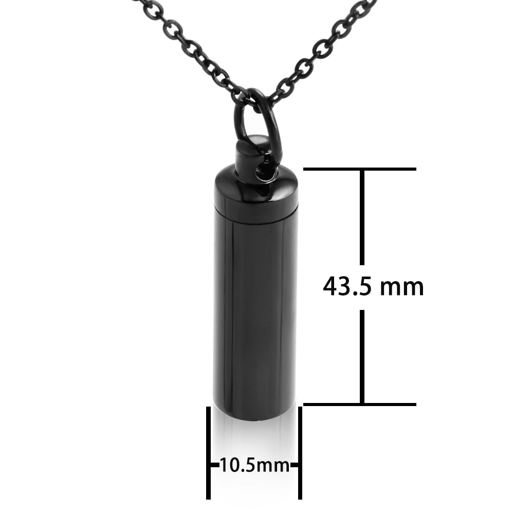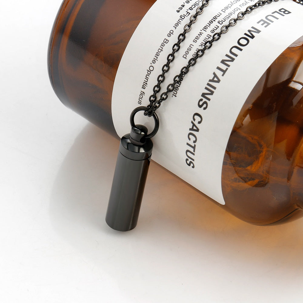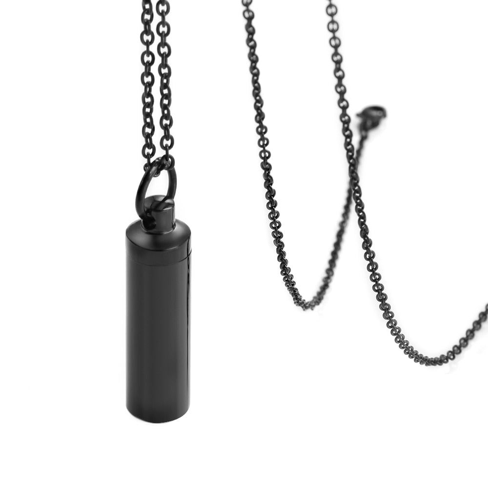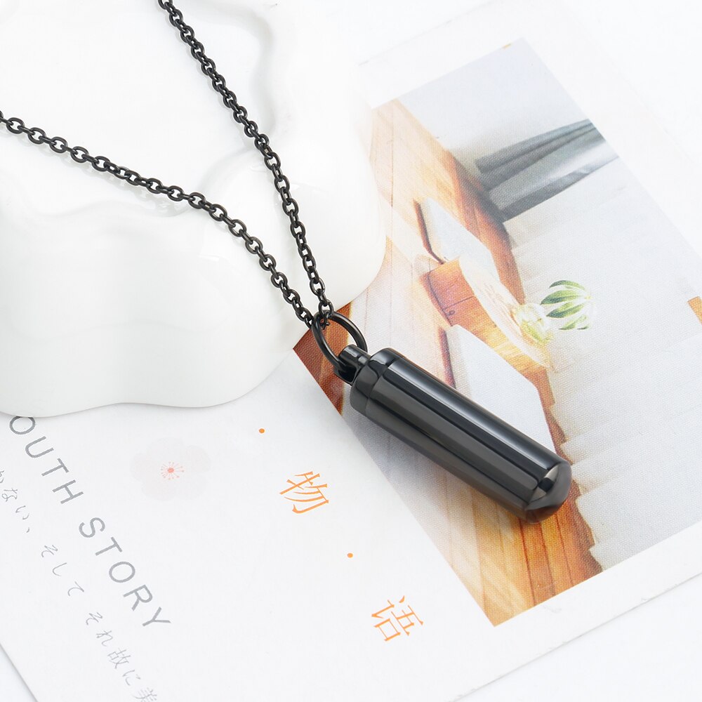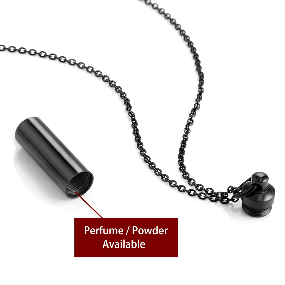 Collar con colgante cilíndrico negro de acero inoxidable 316L para hombres y mujeres, con perfume en polvo, joyería de moda, collar resistente al agua.