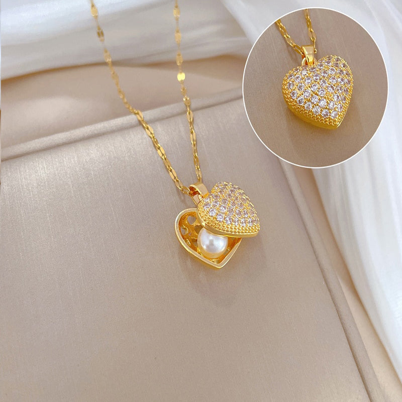 Collar con colgante creativo de perla y corazón de acero inoxidable 316L para mujer