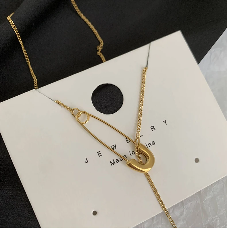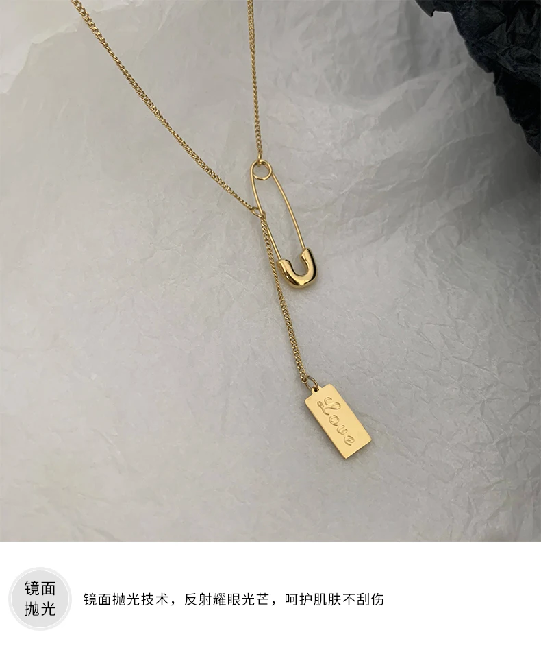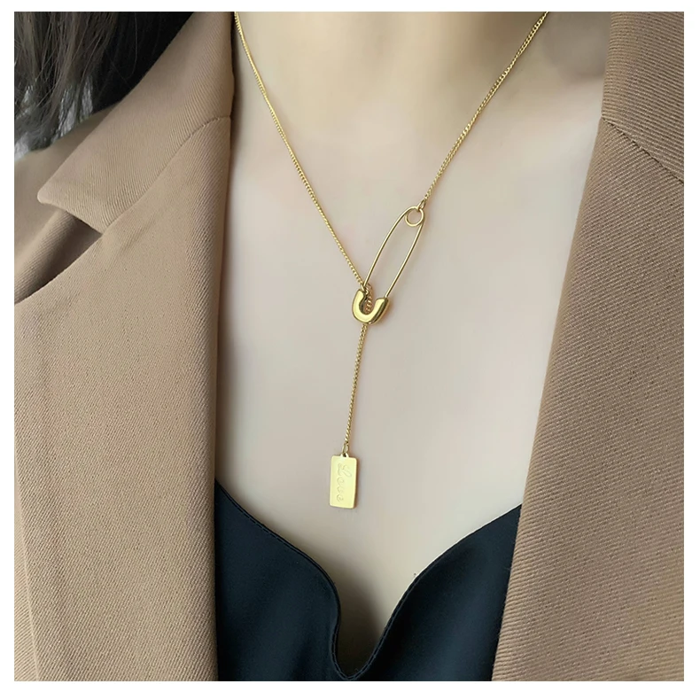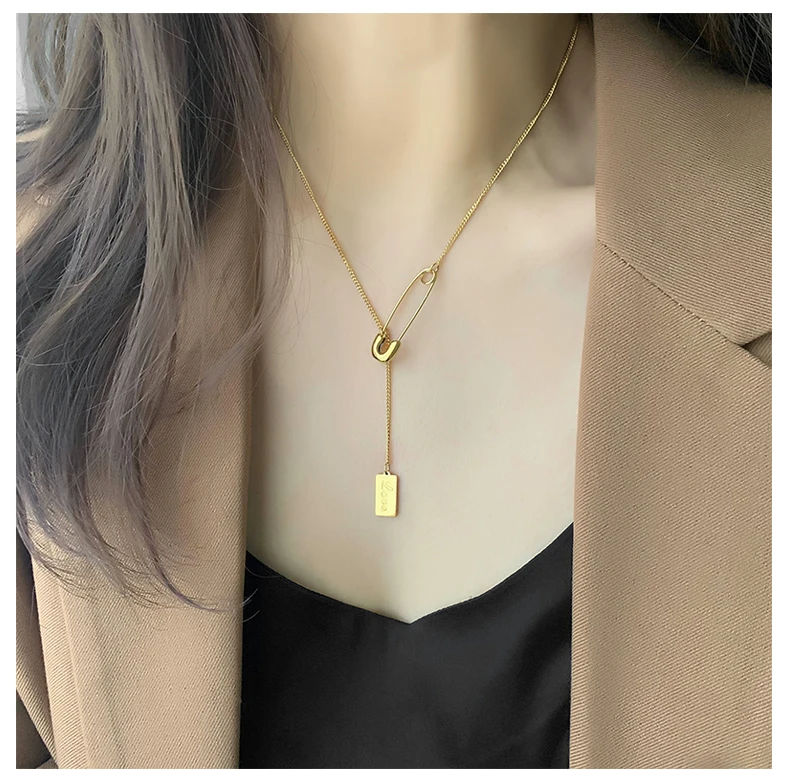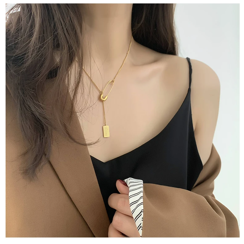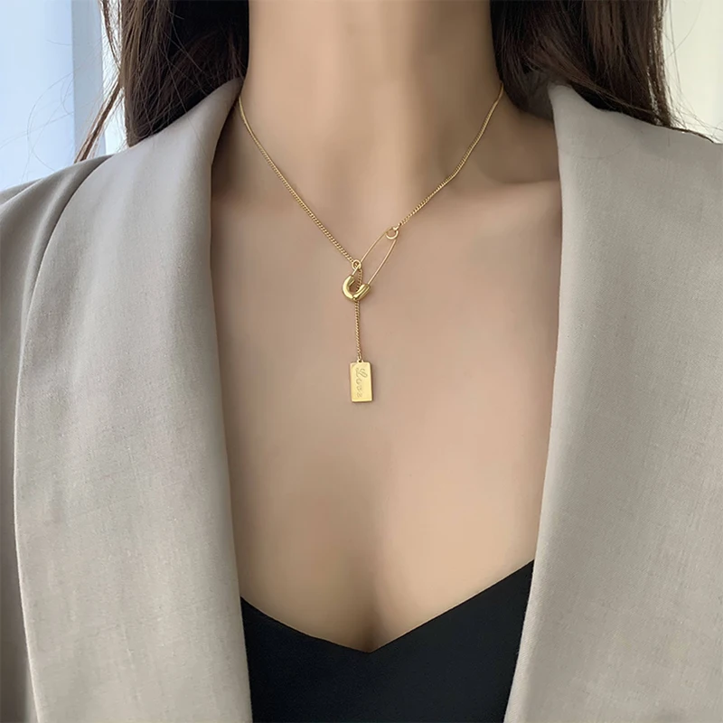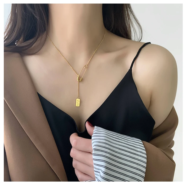 Collar con colgante rectangular de acero inoxidable 316L con pasador geométrico, accesorio de joyería ajustable para mujer.