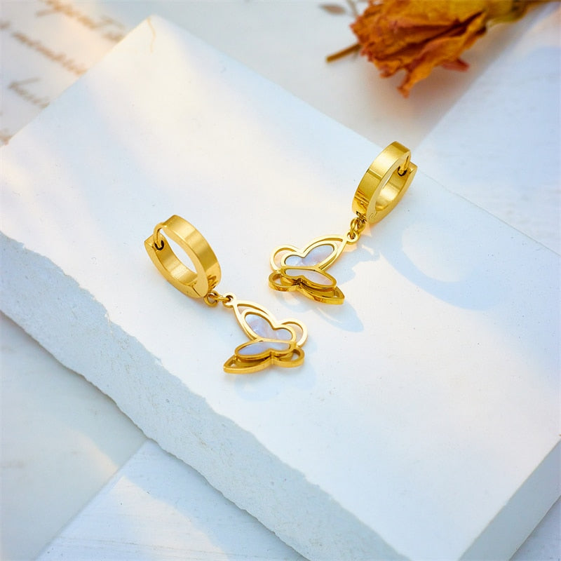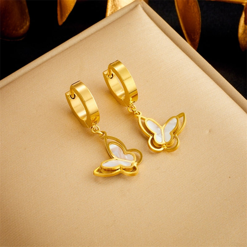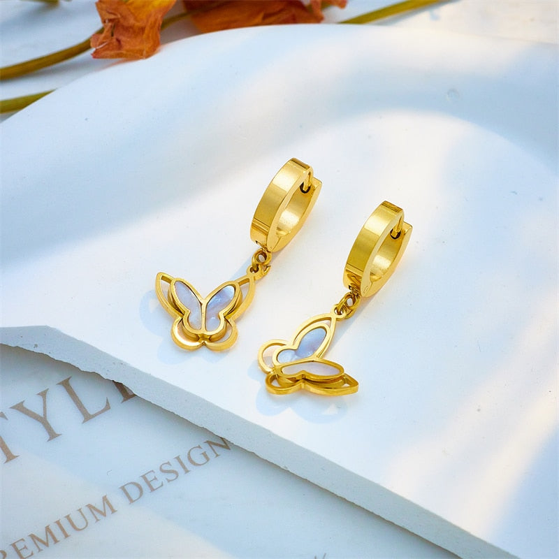 Pendientes de mariposa de acero inoxidable 316L color dorado para mujer y niña, con hebilla en la oreja, joyería de moda, regalos nuevos.