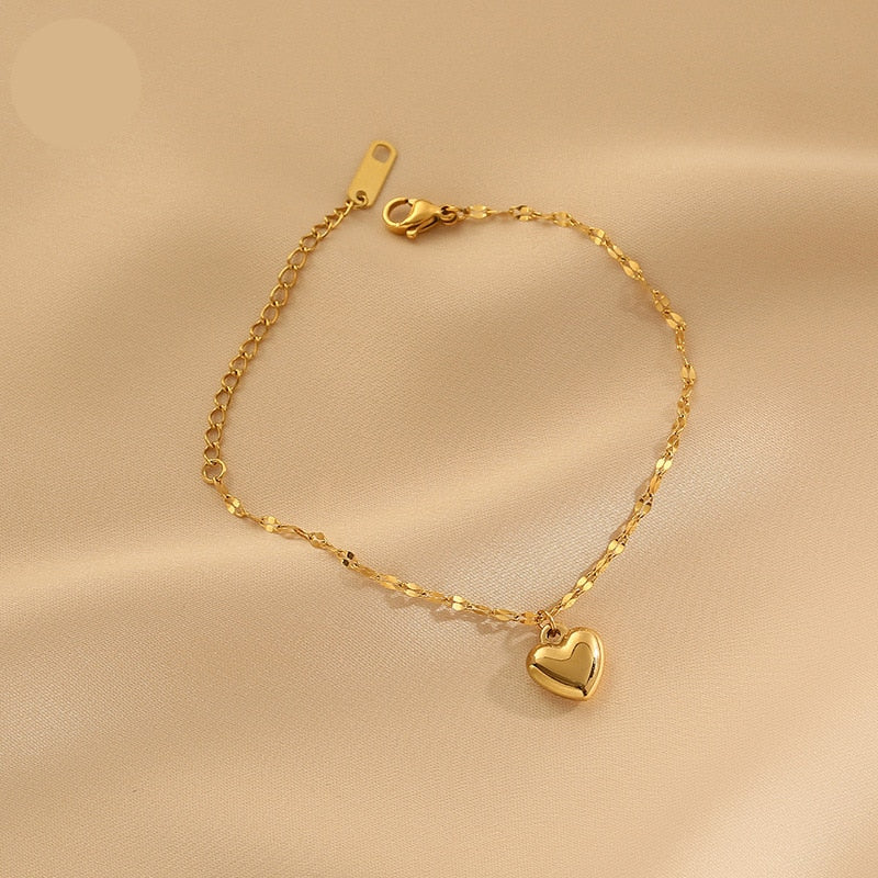 Pulsera de acero inoxidable 316L con dije de corazón de amor en color dorado 585 para mujer, joyería de alta calidad para niñas, regalo de boda.