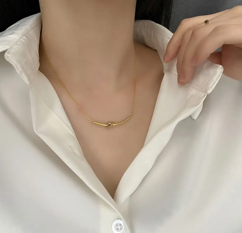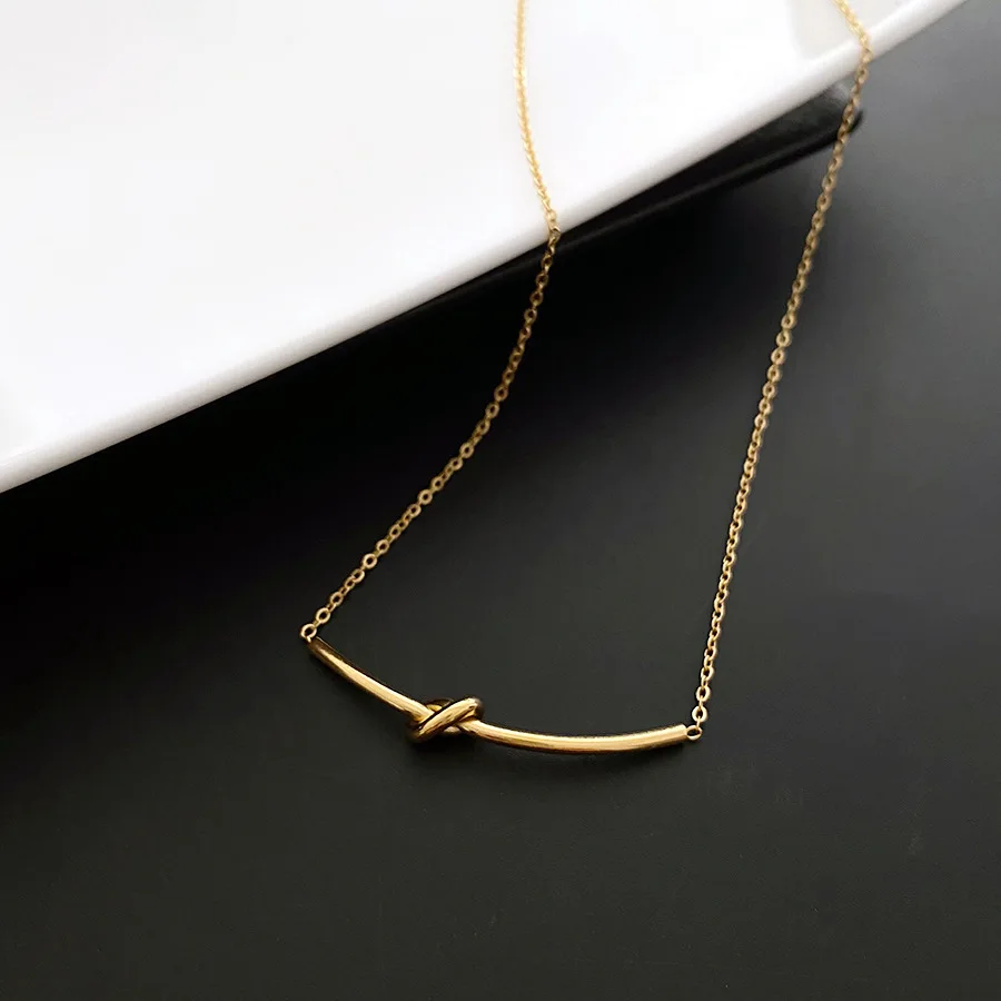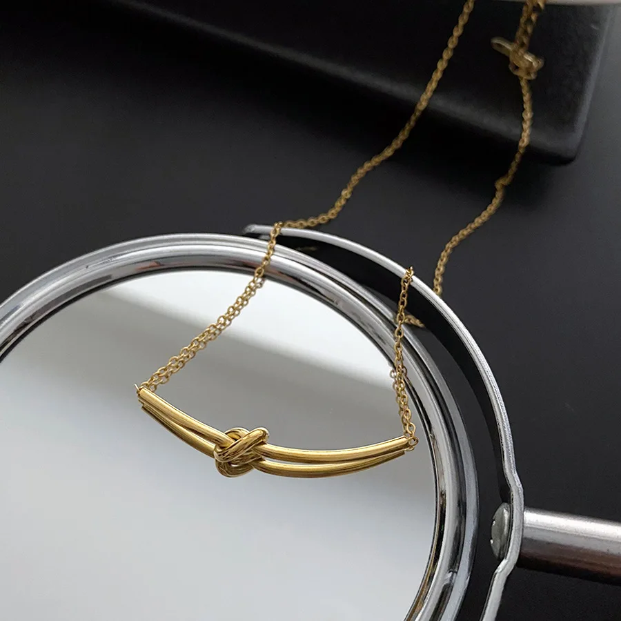 Collar con colgante anudado de acero inoxidable 316L color dorado, joyería de oro 585 para mujer, elegante y novedosa, ideal como regalo de fiesta.