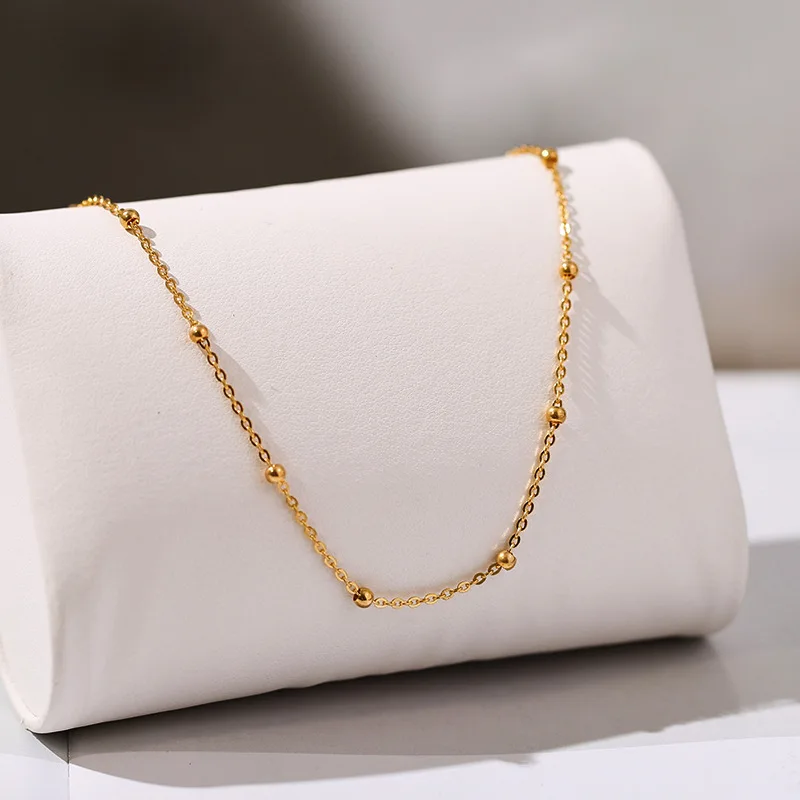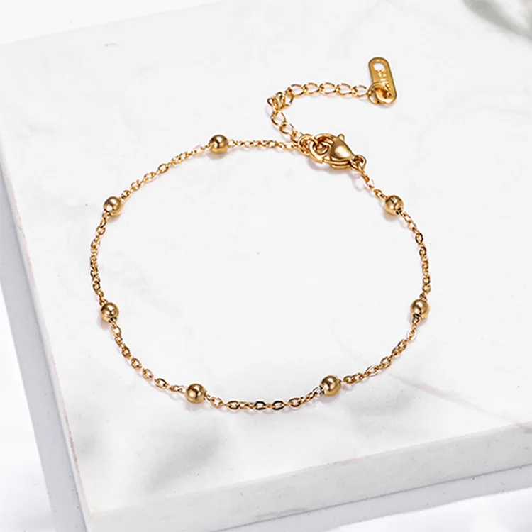 Tobilleras de cadena con cuentas de color dorado de acero inoxidable 316L