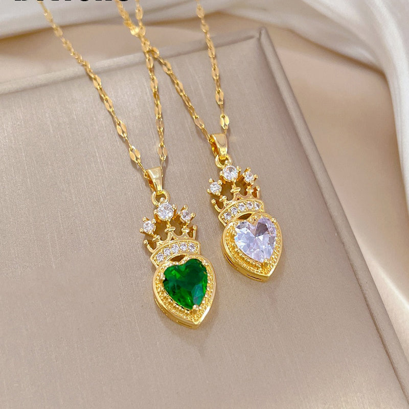 Collar con colgante de corona de cristal y corazón de acero inoxidable 316L para mujer y niña, gargantilla de cadena de clavícula a la moda, regalo de joyería