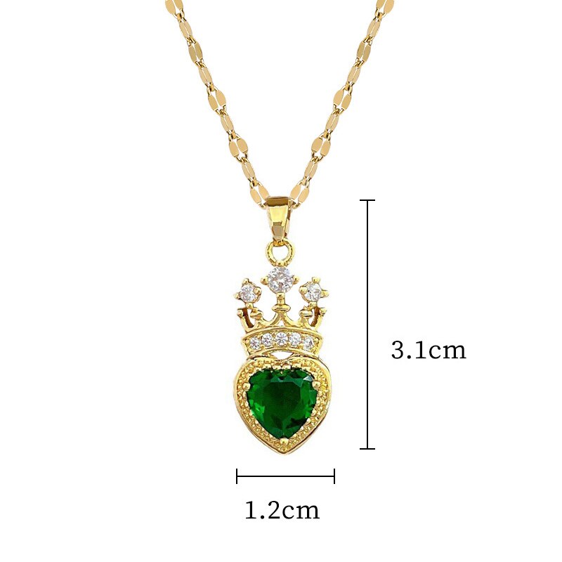 Collar con colgante de corona de cristal y corazón de acero inoxidable 316L para mujer