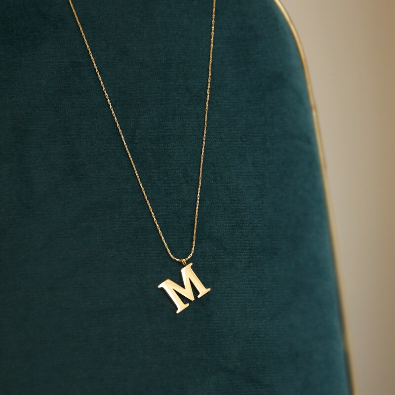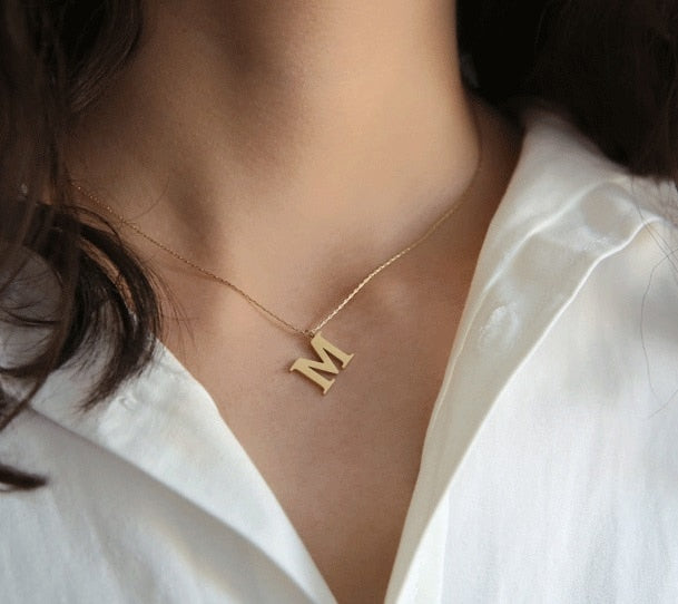 Collar con colgante de letra M de acero inoxidable 316L, joyería de oro 585, collar con iniciales para mujer, sin decoloración.