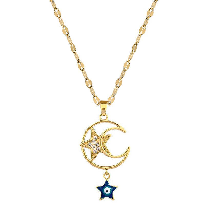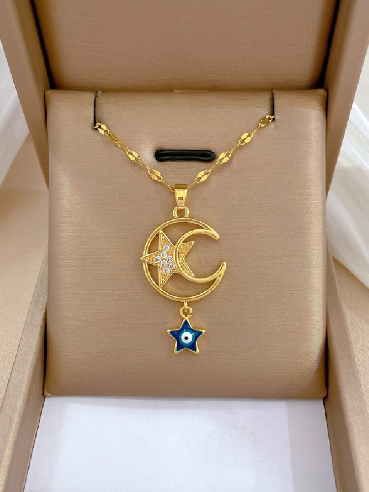 Collar con colgante de acero inoxidable 316L con forma de ojo de diablo, luna y estrella para mujer