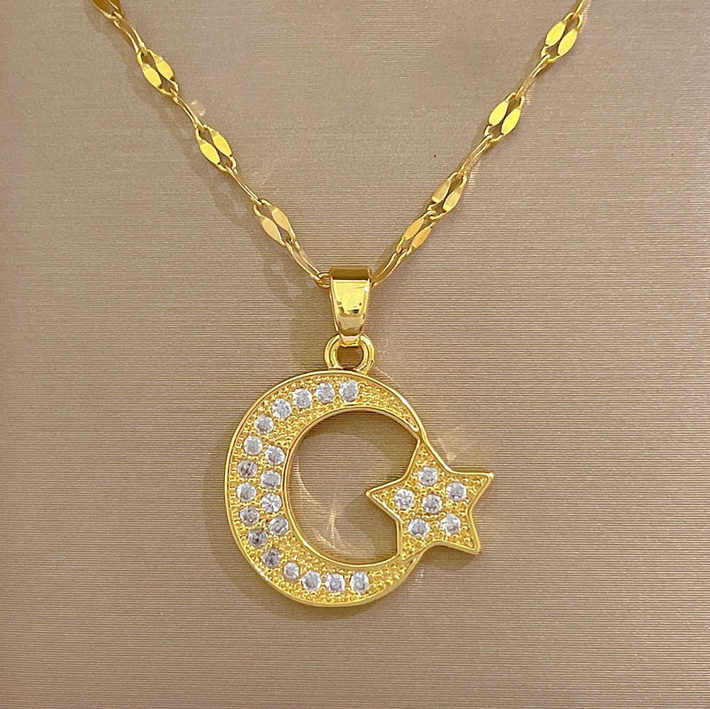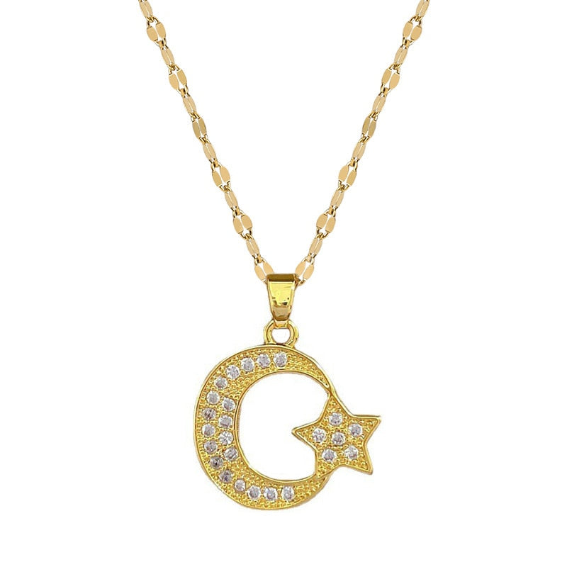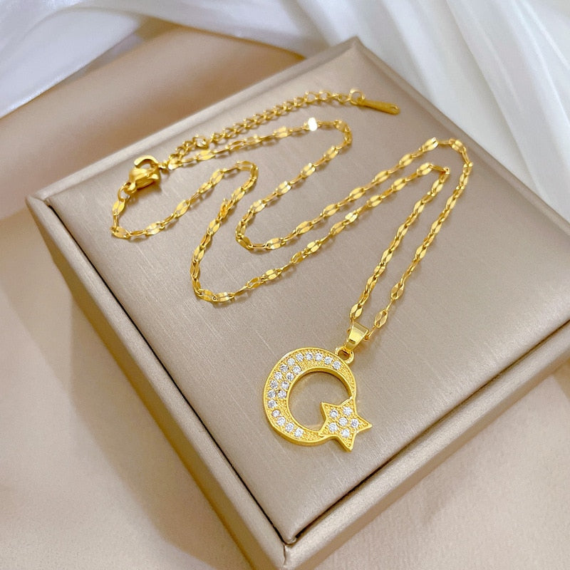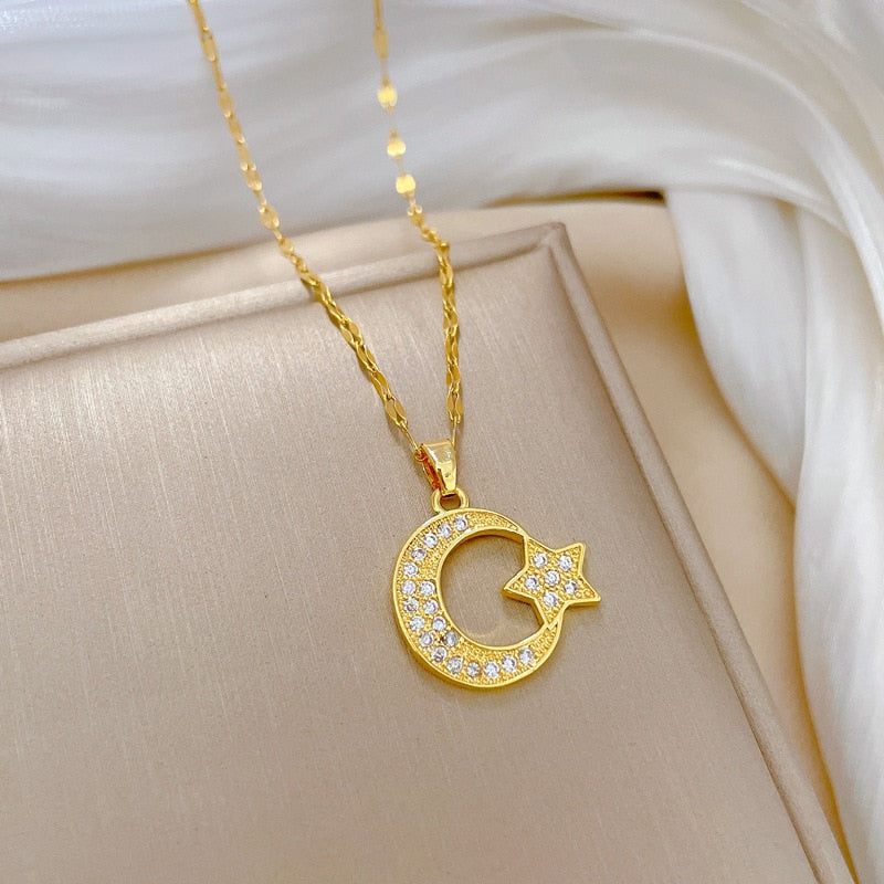 Collar con colgante de luna y estrellas de acero inoxidable 316L para mujer