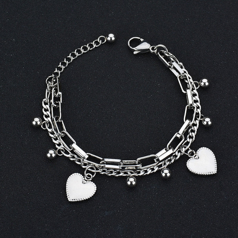 Pulsera multicapa de acero inoxidable 316L con forma de corazón para mujer