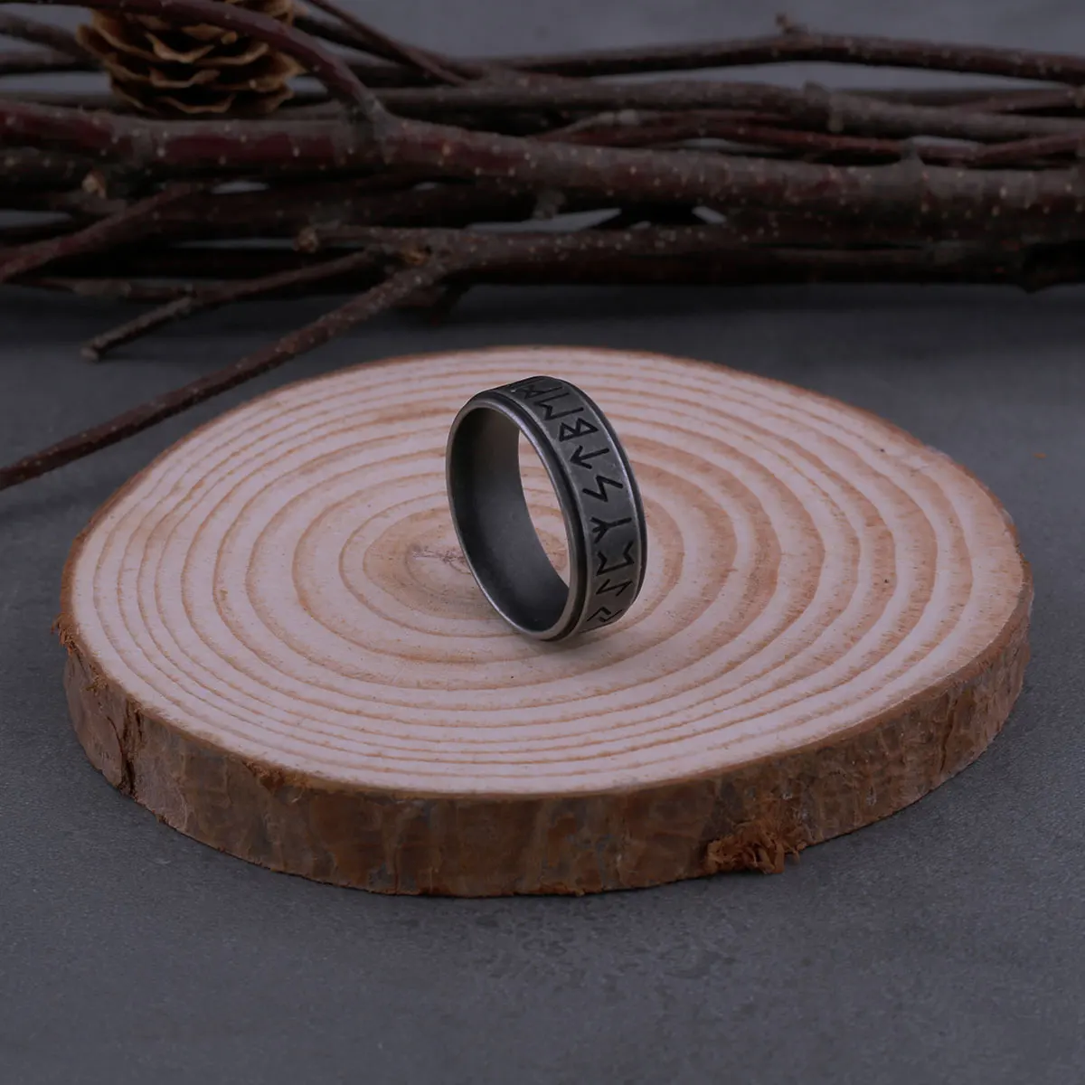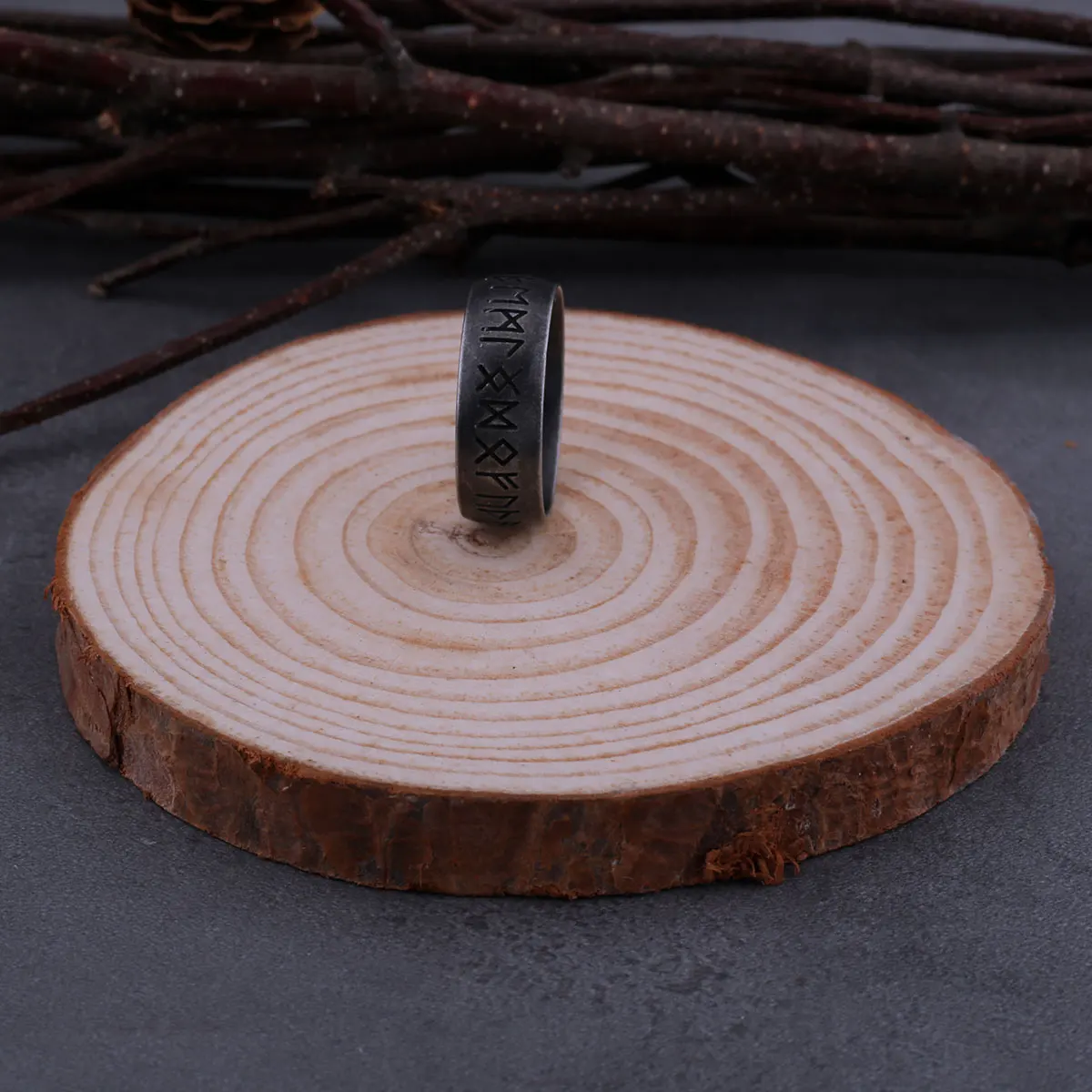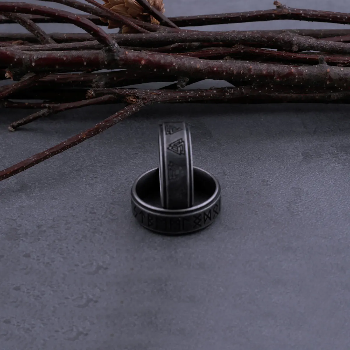Anillo de acero inoxidable 316L con runas y amuleto vikingo nórdico de Odín para hombres y mujeres