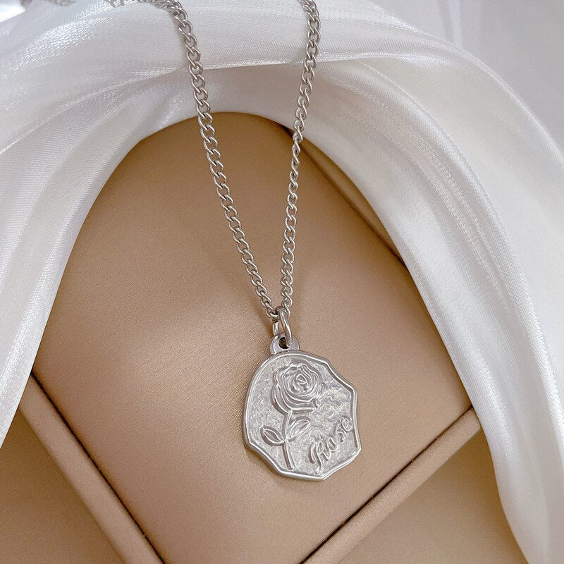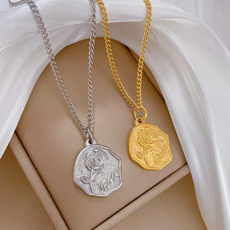Colgante irregular de acero inoxidable 316L con personalidad de rosa y temperamento