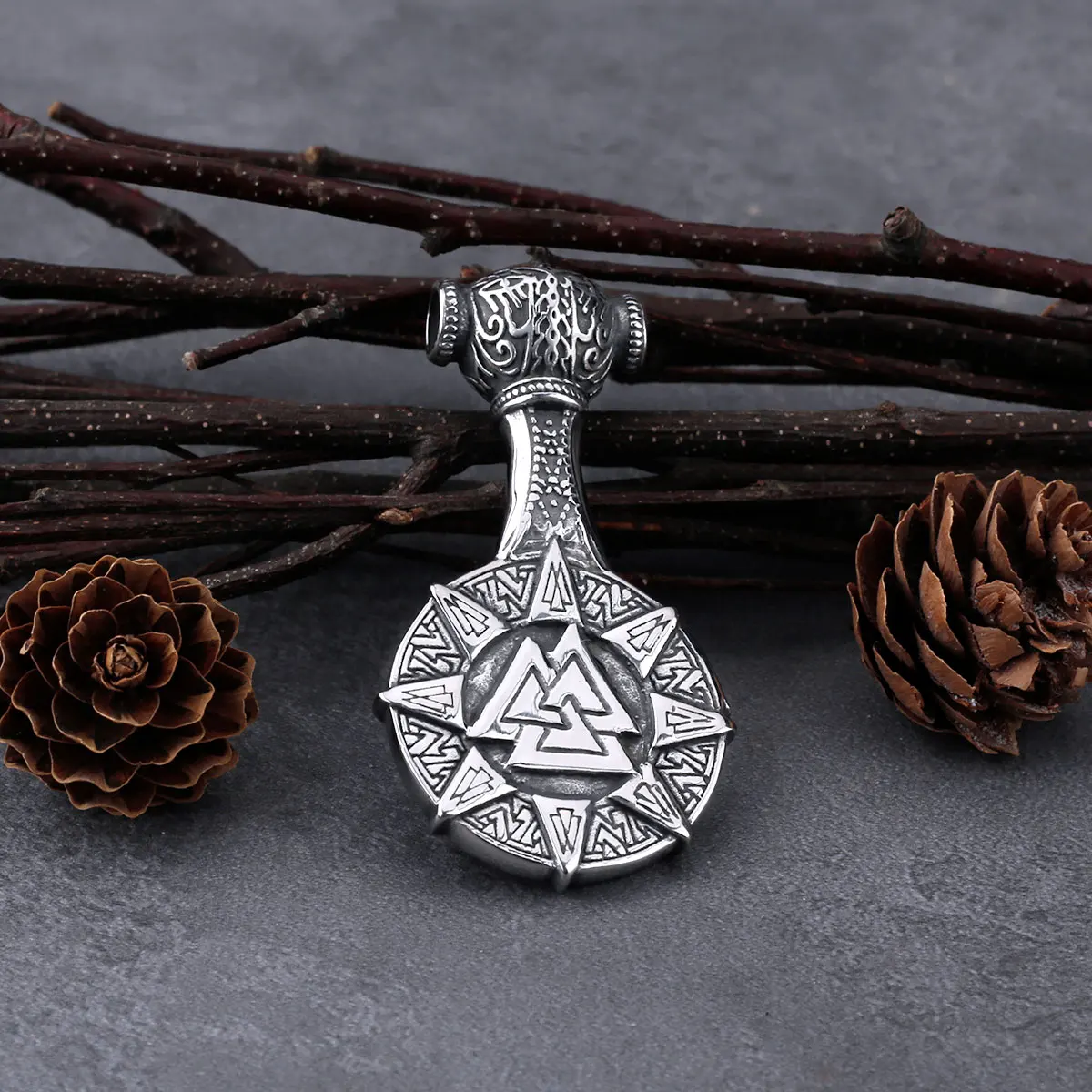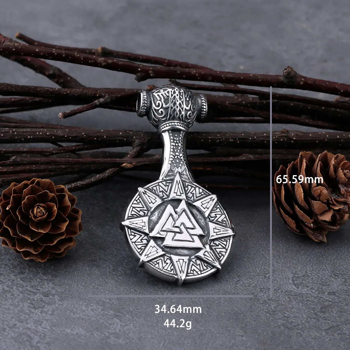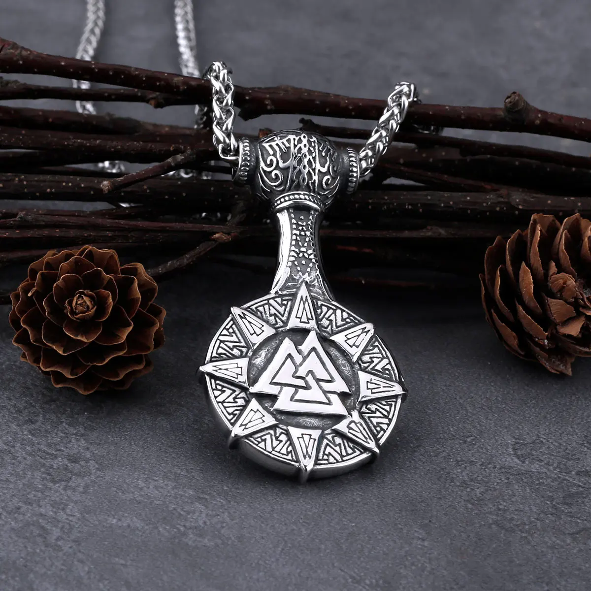 Joyería vikinga: collar con colgante de amuleto y brújula rúnica vikinga de acero inoxidable 316L para hombre, martillo de Thor, joyería retro dominante, regalo