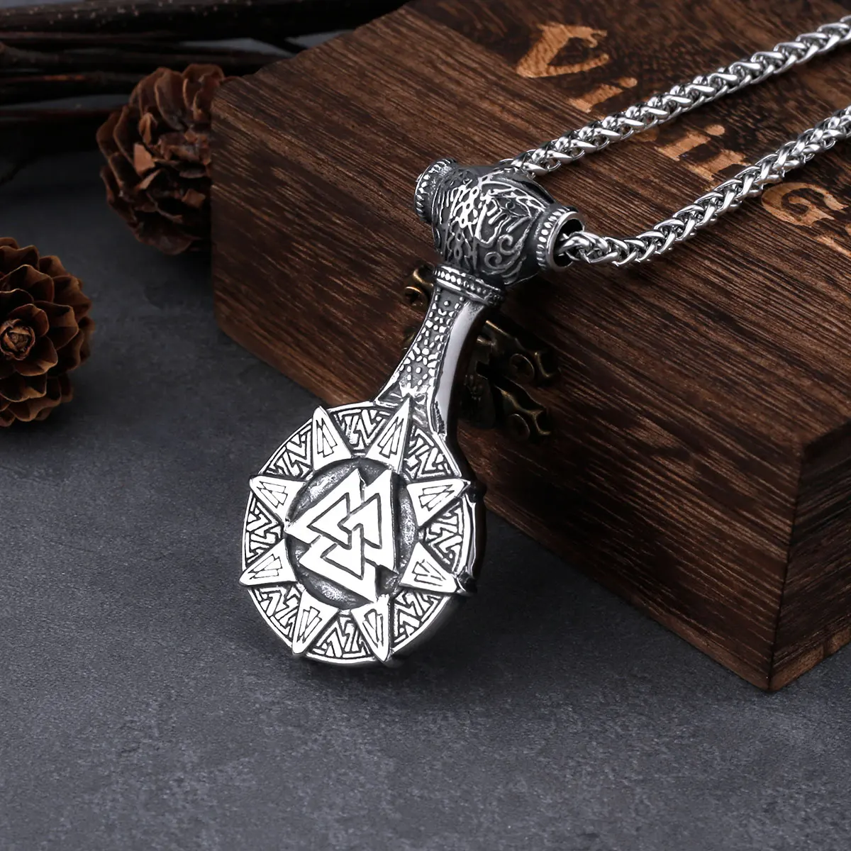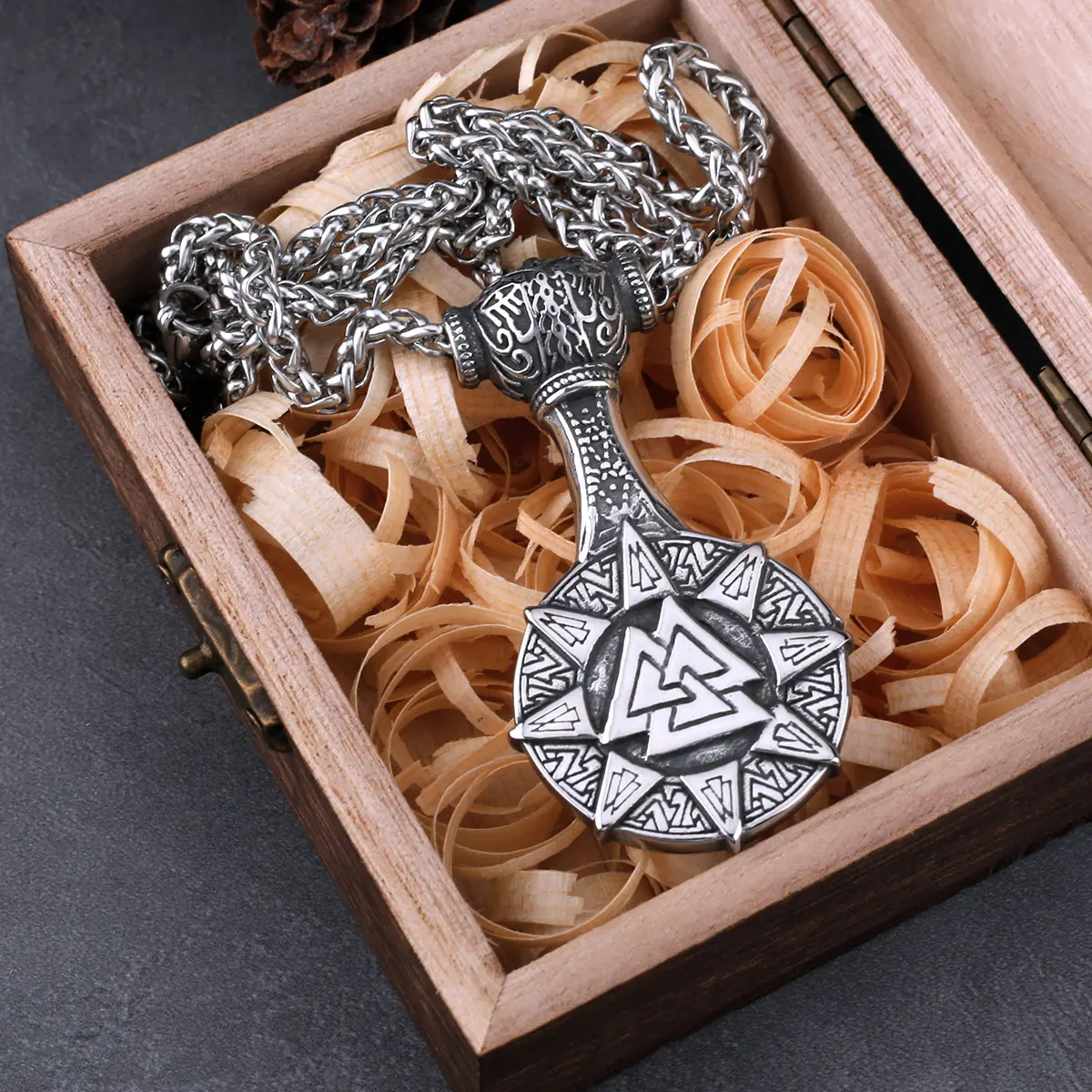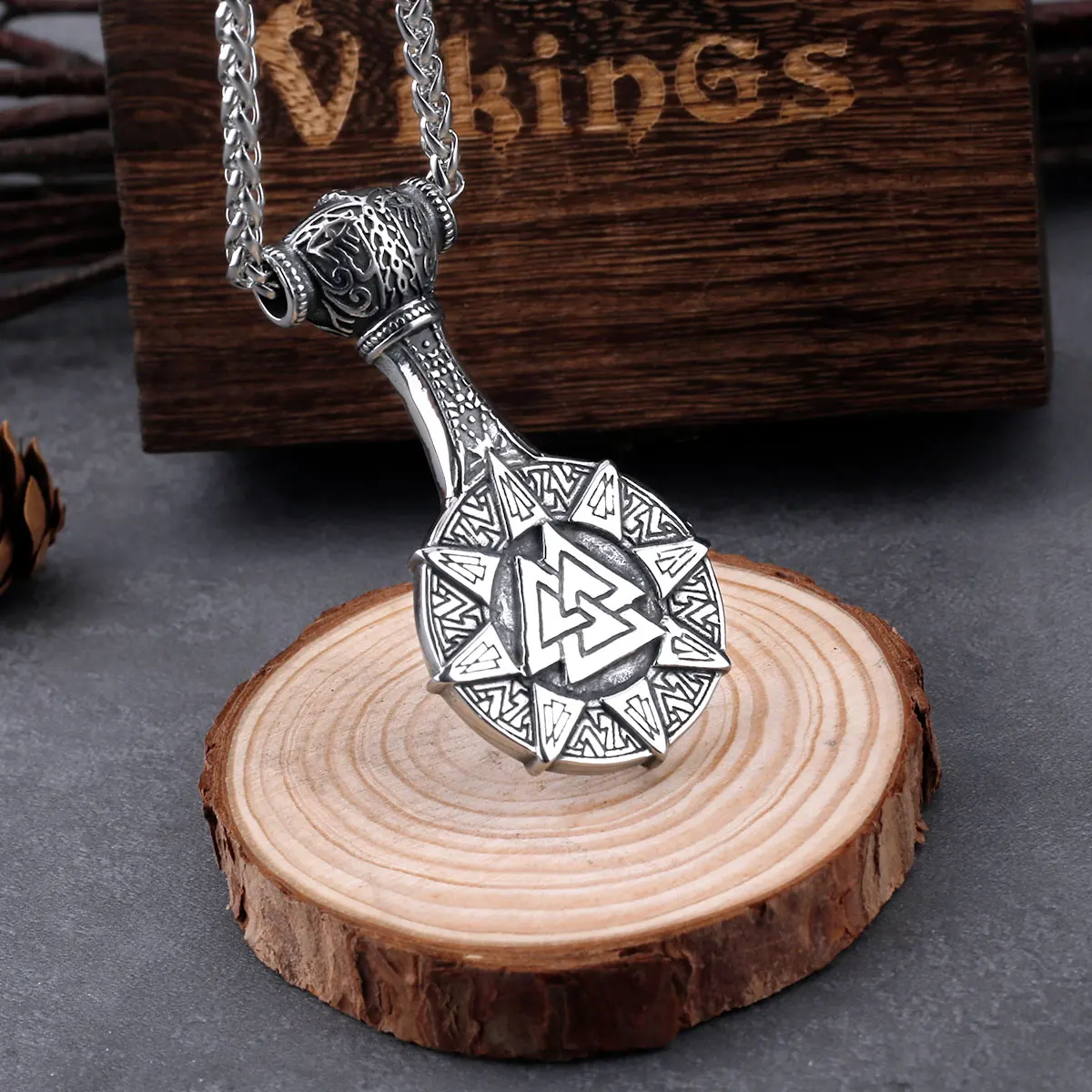 Joyería vikinga: collar con colgante de amuleto y brújula rúnica vikinga de acero inoxidable 316L para hombre, martillo de Thor, joyería retro dominante, regalo