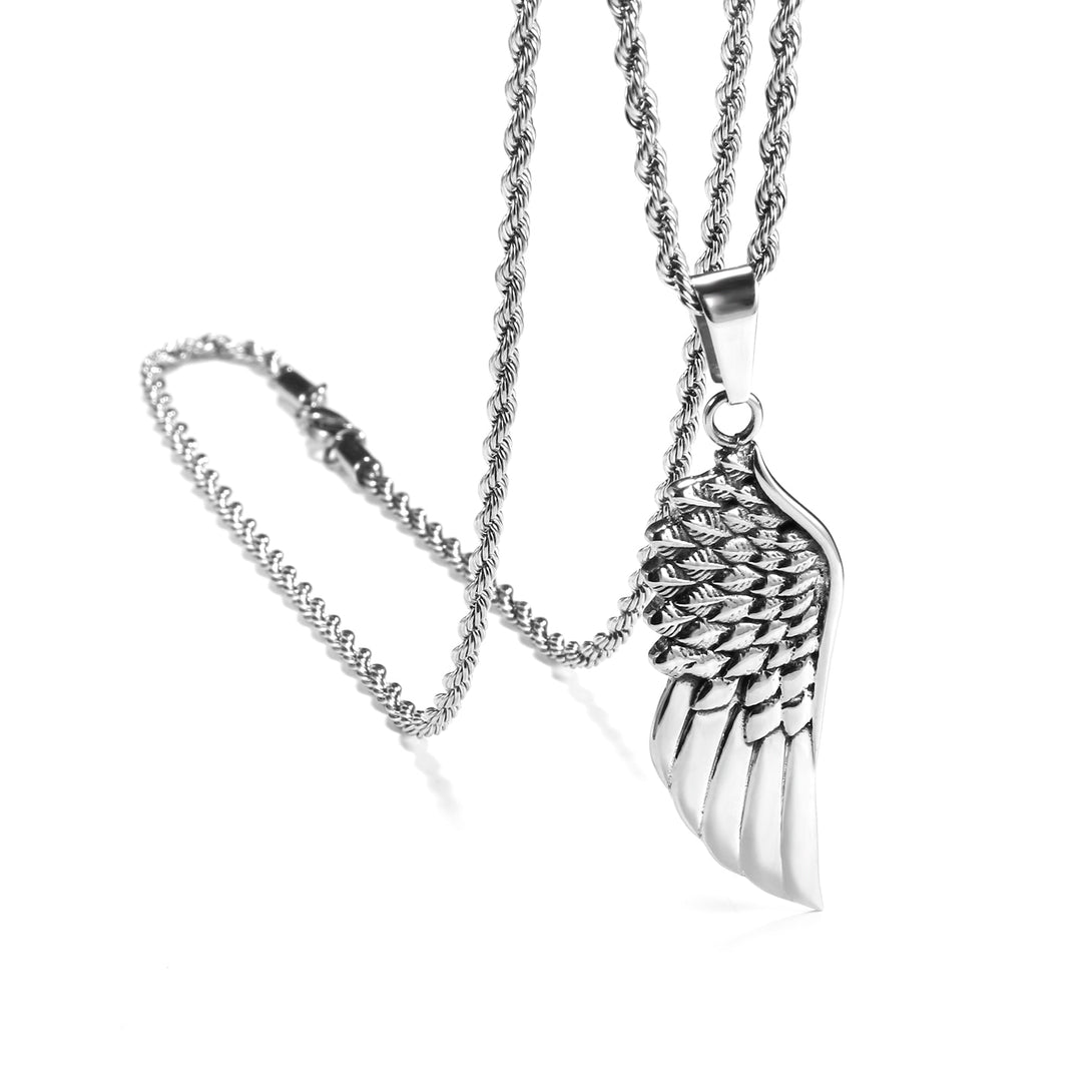 Collar con colgante de ala de acero inoxidable 316L para hombres y mujeres, color plata