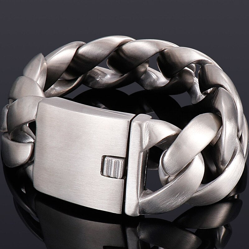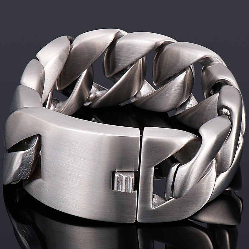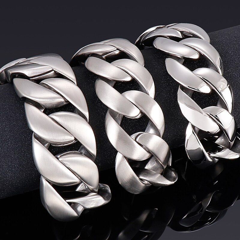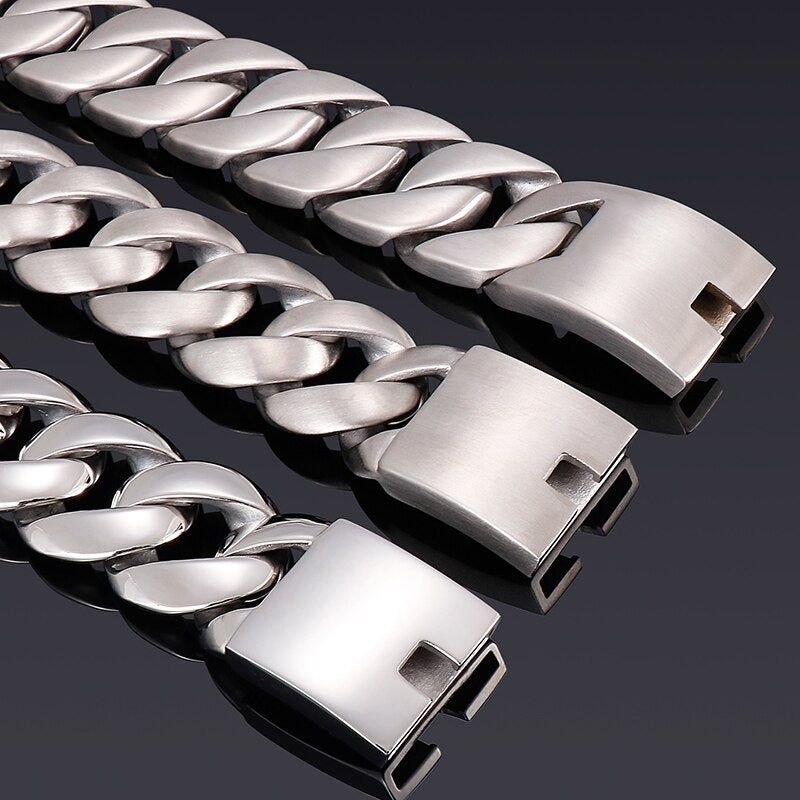 Pulsera de acero inoxidable 316L con eslabones cubanos, cadena cromada, 31 mm, 9,45" y 24 cm de largo.