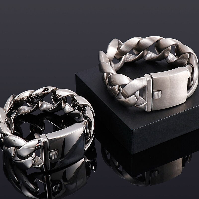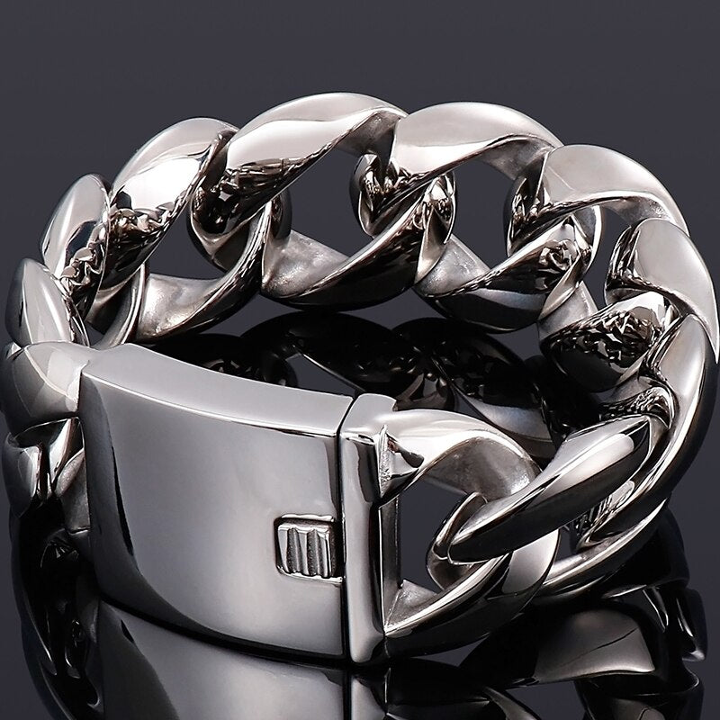 Pulsera de eslabones cubanos de acero inoxidable 316L para hombre, 31 mm, 9,45" y 24 cm de largo.