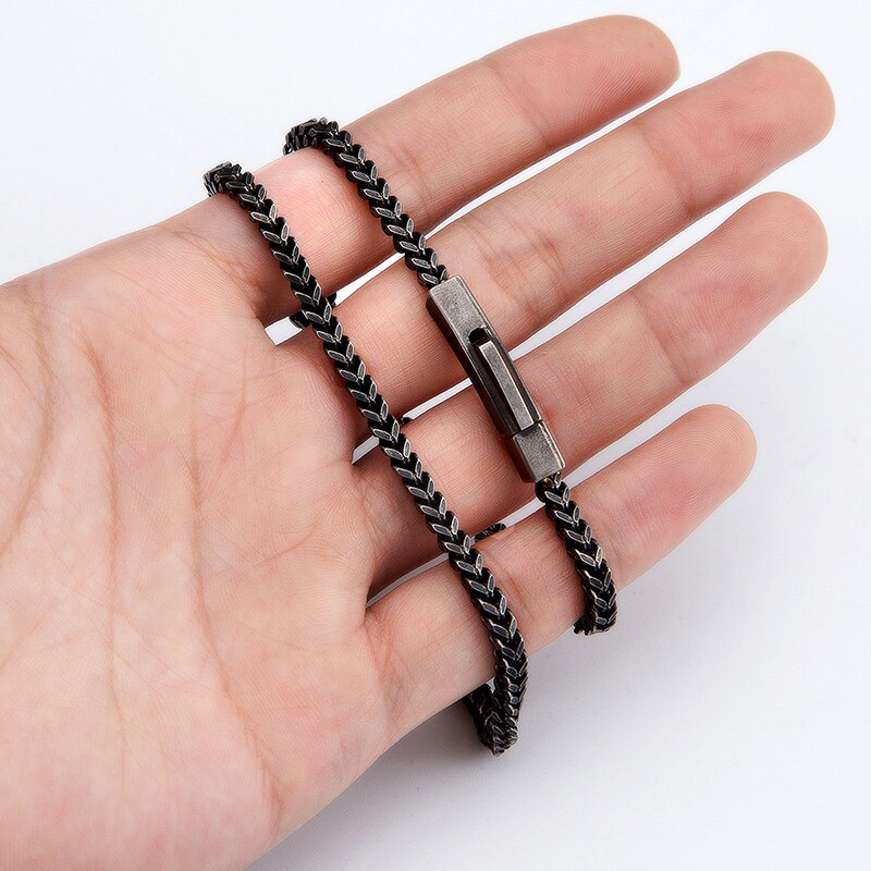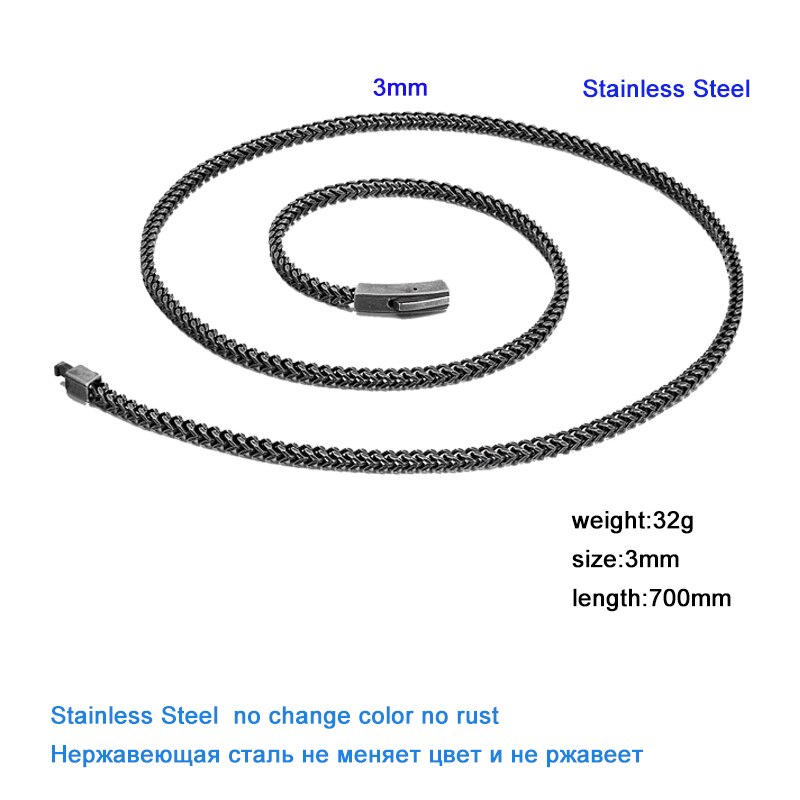 Cadena de 3 mm de ancho de acero inoxidable cubano vintage negro collar punk largo para hombre hip hop plata mate cepillada accesorios de joyería masculina