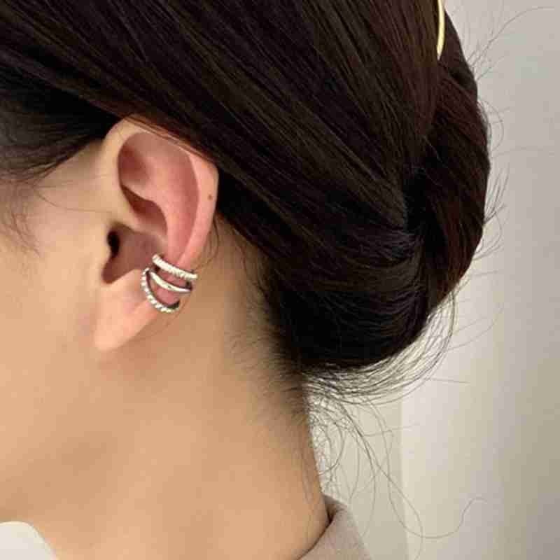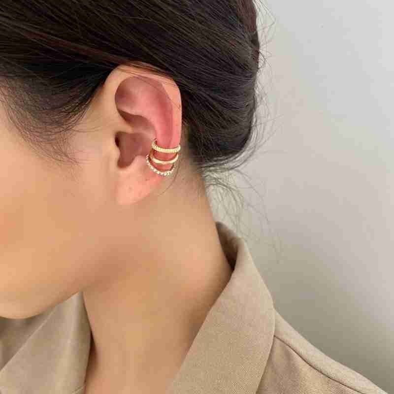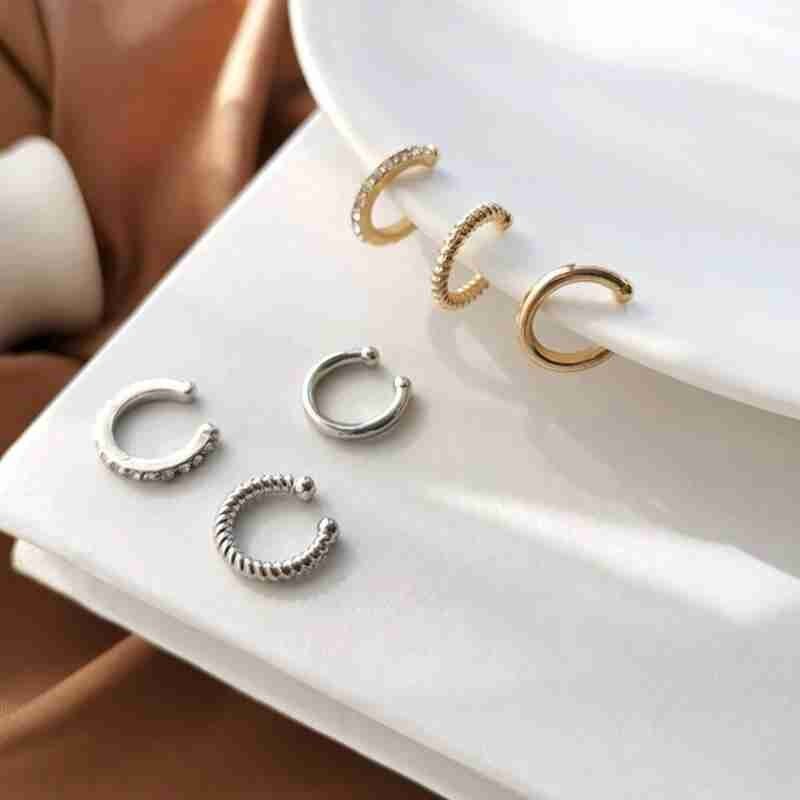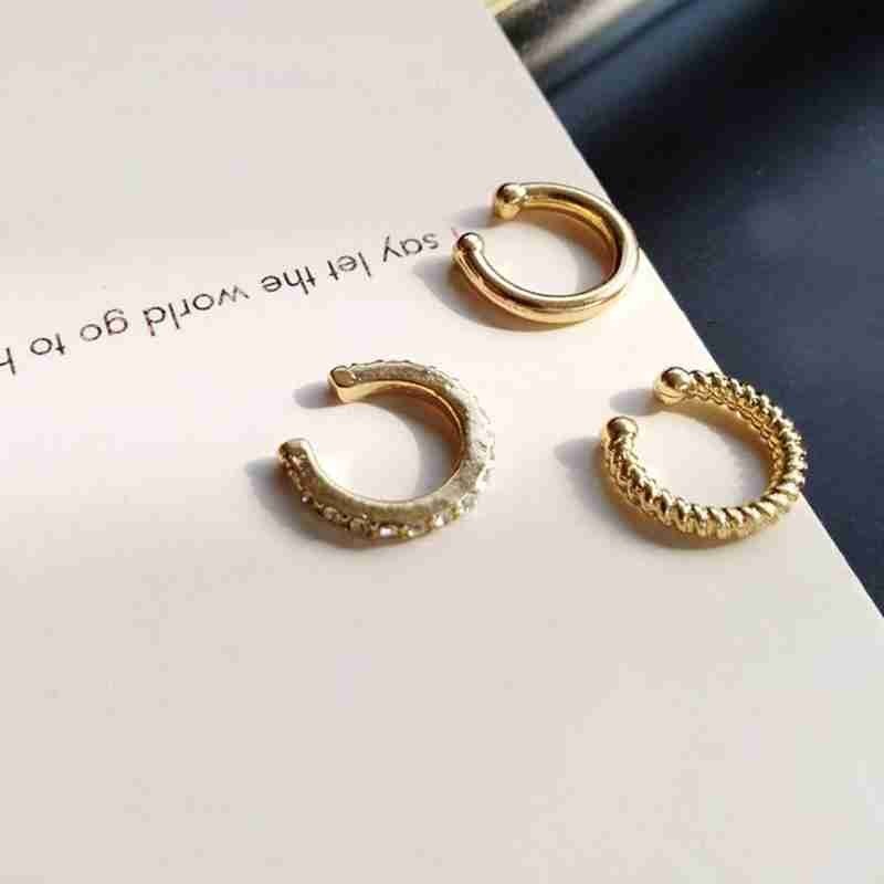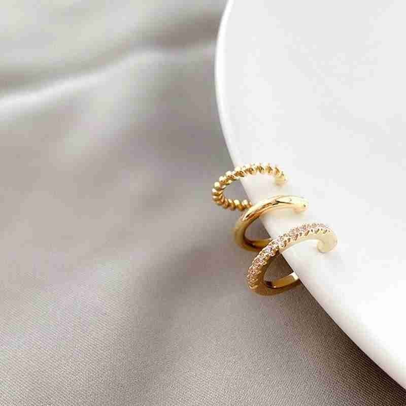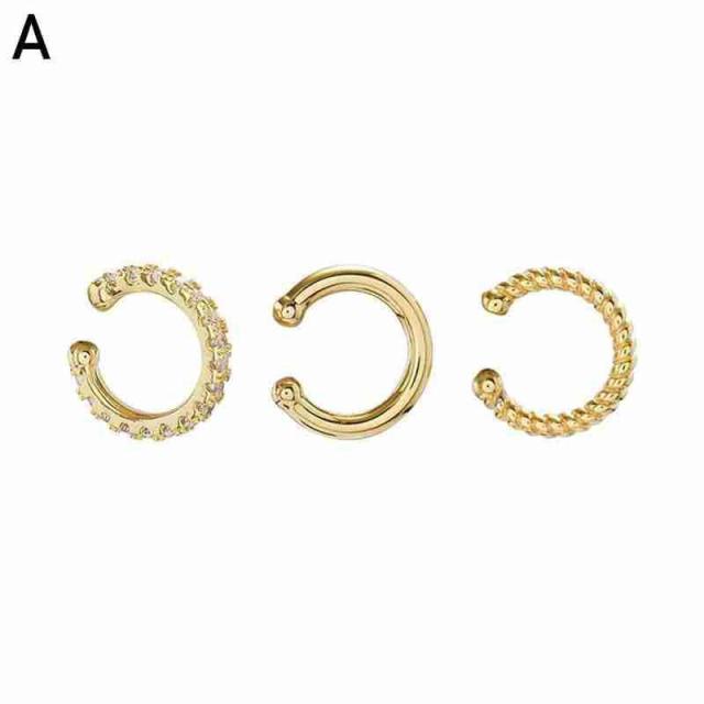Juego de 3 pendientes minimalistas de clip para cartílago con circonita cúbica en color dorado C