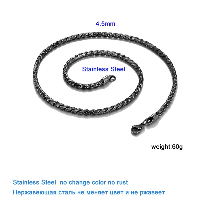 Cadena cubana de acero inoxidable de 4,5 mm, estilo vintage, color negro, ancho, estilo punk, para hombre.